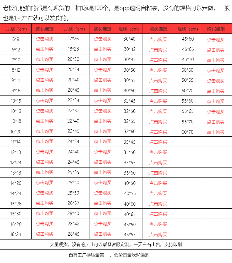 재고 OPP 자체 접착 가방 의류 투명 포장 가방 방진 가방스토어 가기