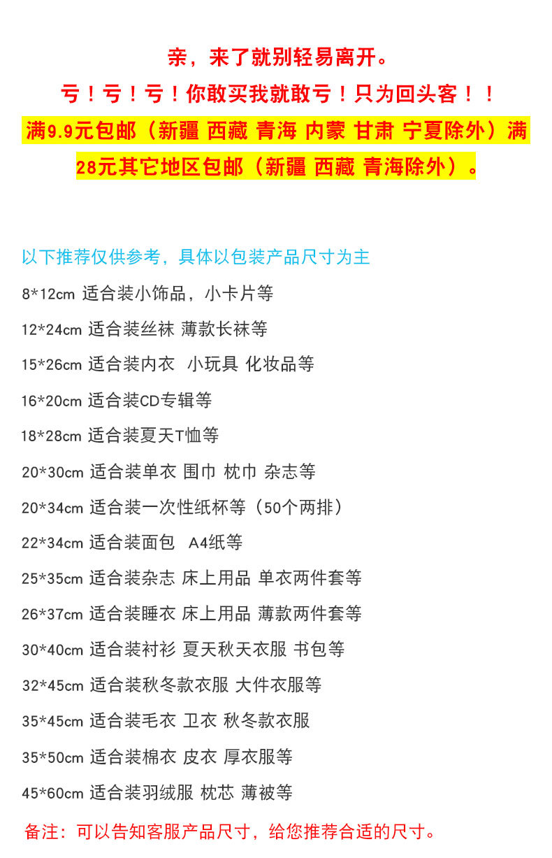재고 OPP 자체 접착 가방 의류 투명 포장 가방 방진 가방