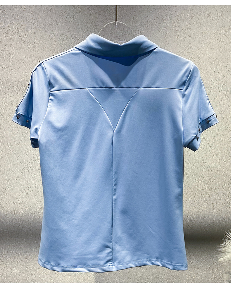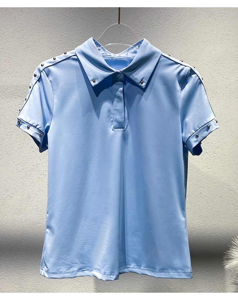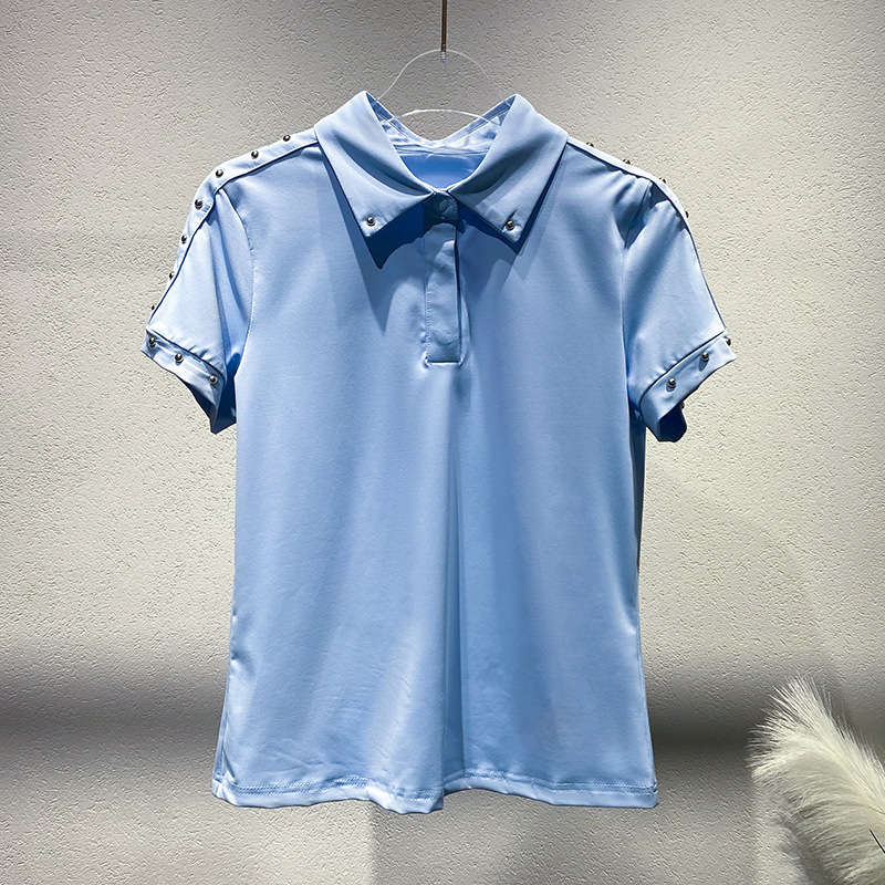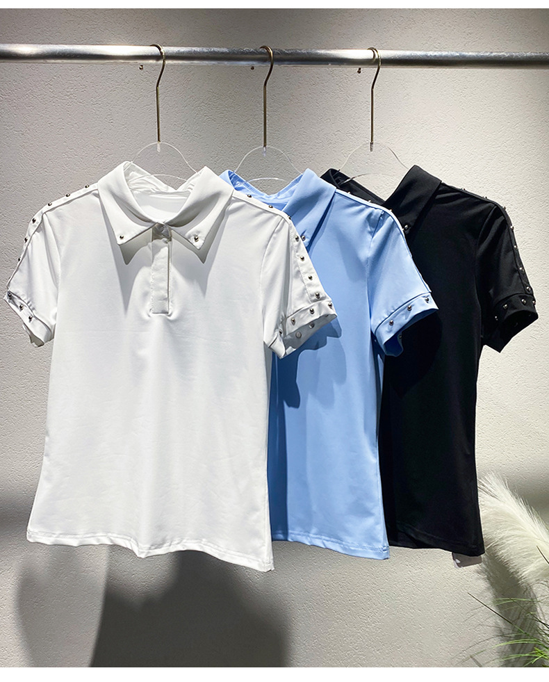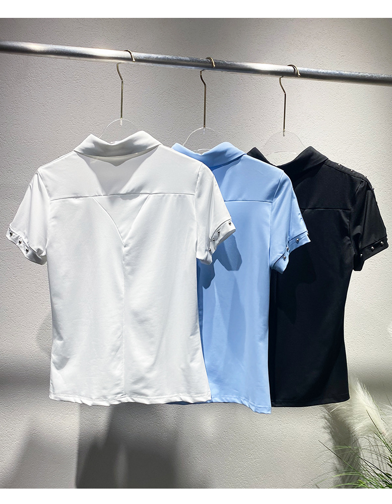 골프 캐주얼 반팔 티셔츠 2024 봄과 여름 새로운 단색 옷깃에 꼭 맞는 슬리밍 스포츠 폴로 탑