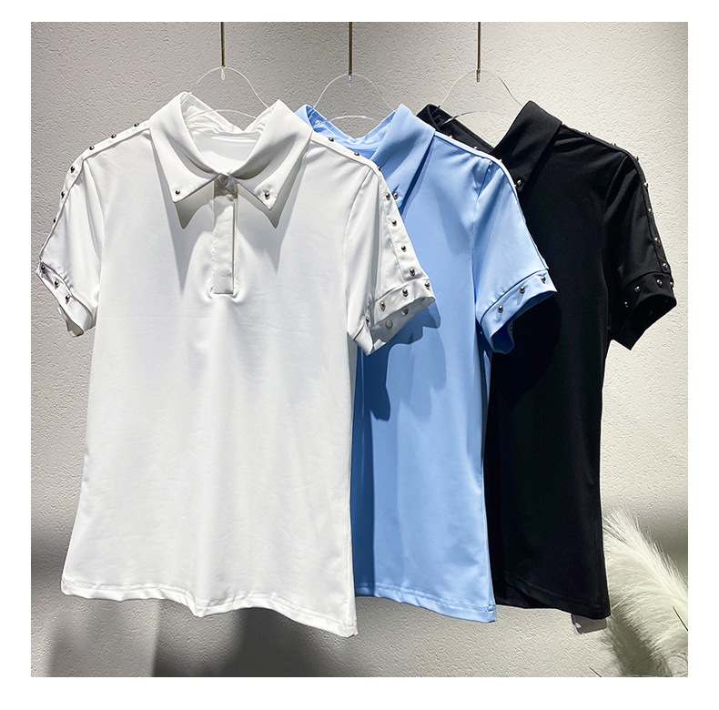 골프 캐주얼 반팔 티셔츠 2024 봄과 여름 새로운 단색 옷깃에 꼭 맞는 슬리밍 스포츠 폴로 탑스토어 가기
