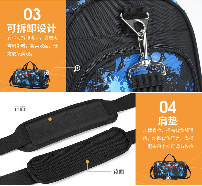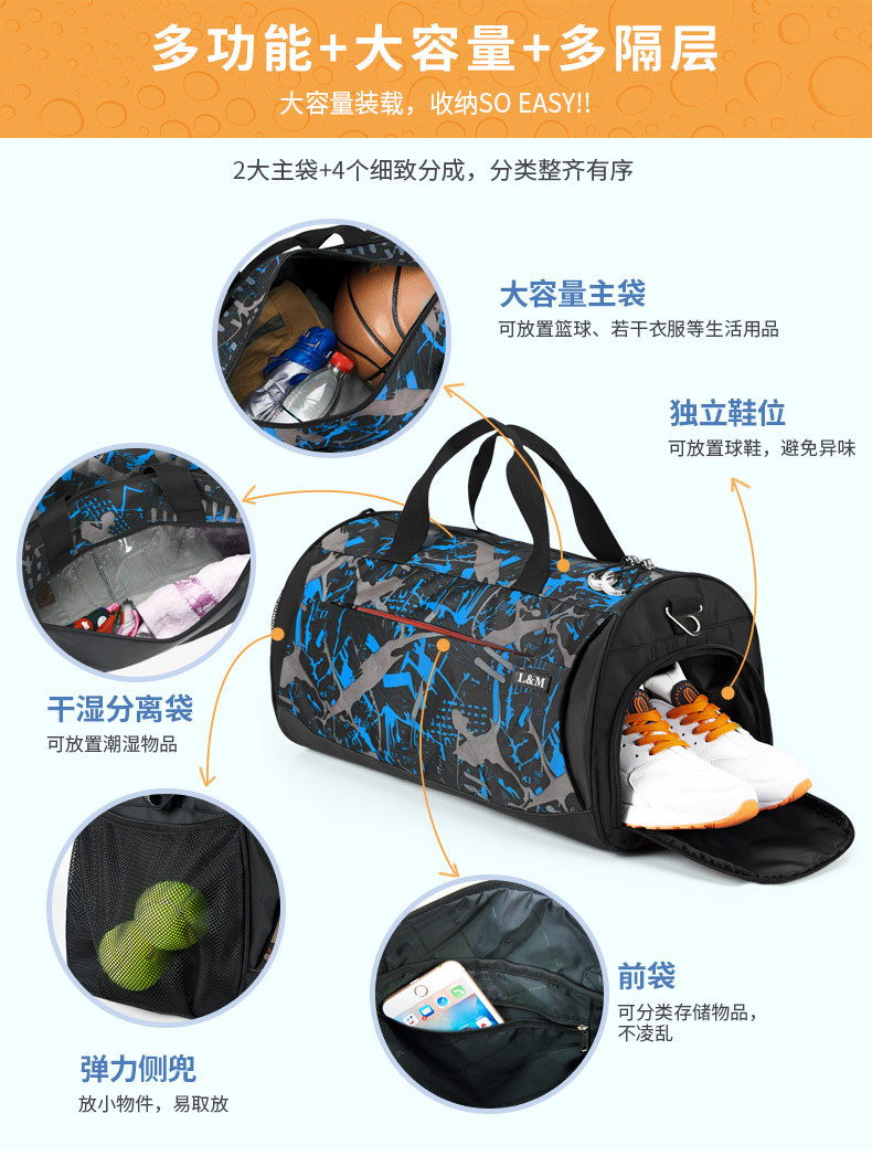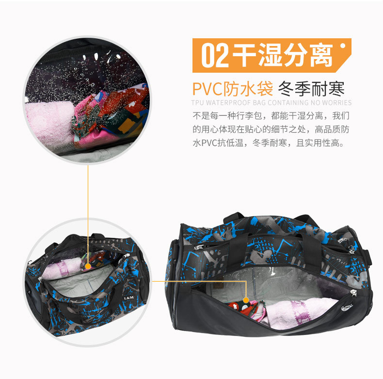 대용량 단거리 여행 가방 어깨 크로스 바디 보관 수하물 가방 옥스포드 천 습식 및 건조 분리 수영 피트니스 가방