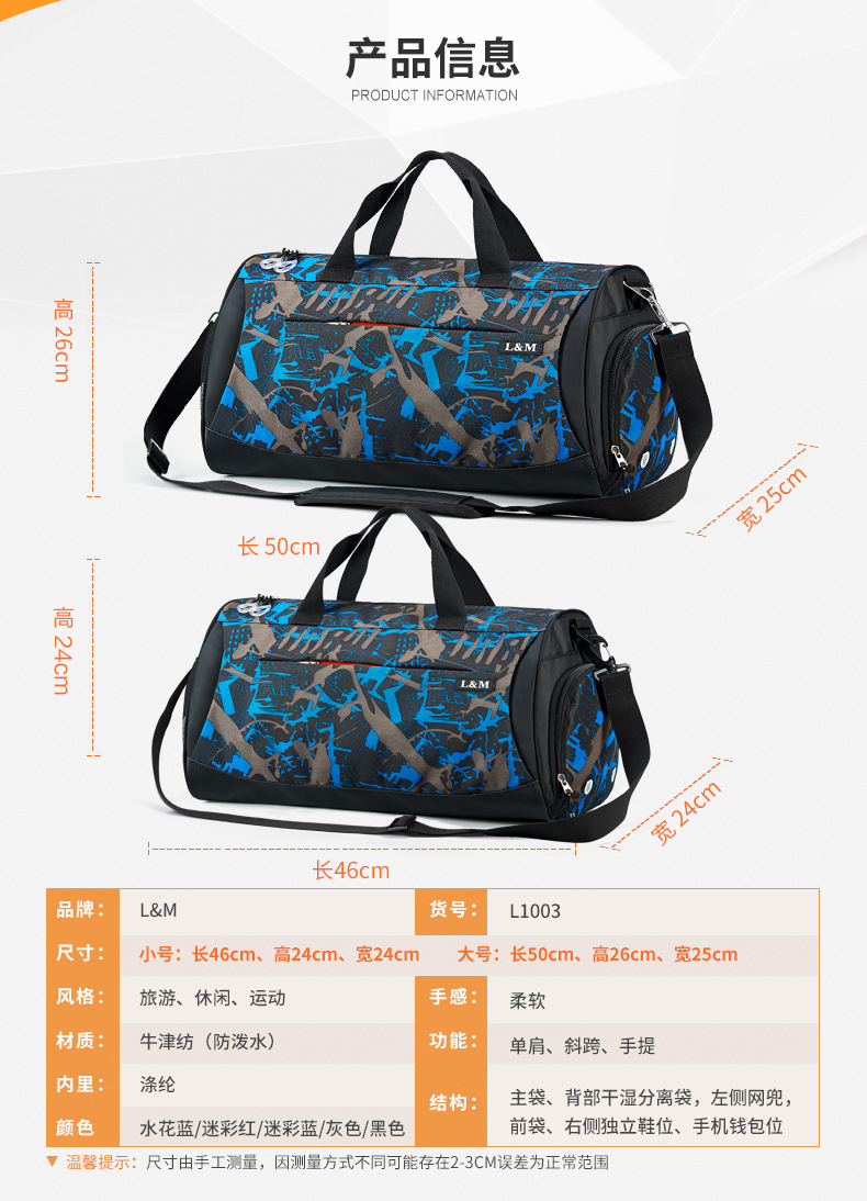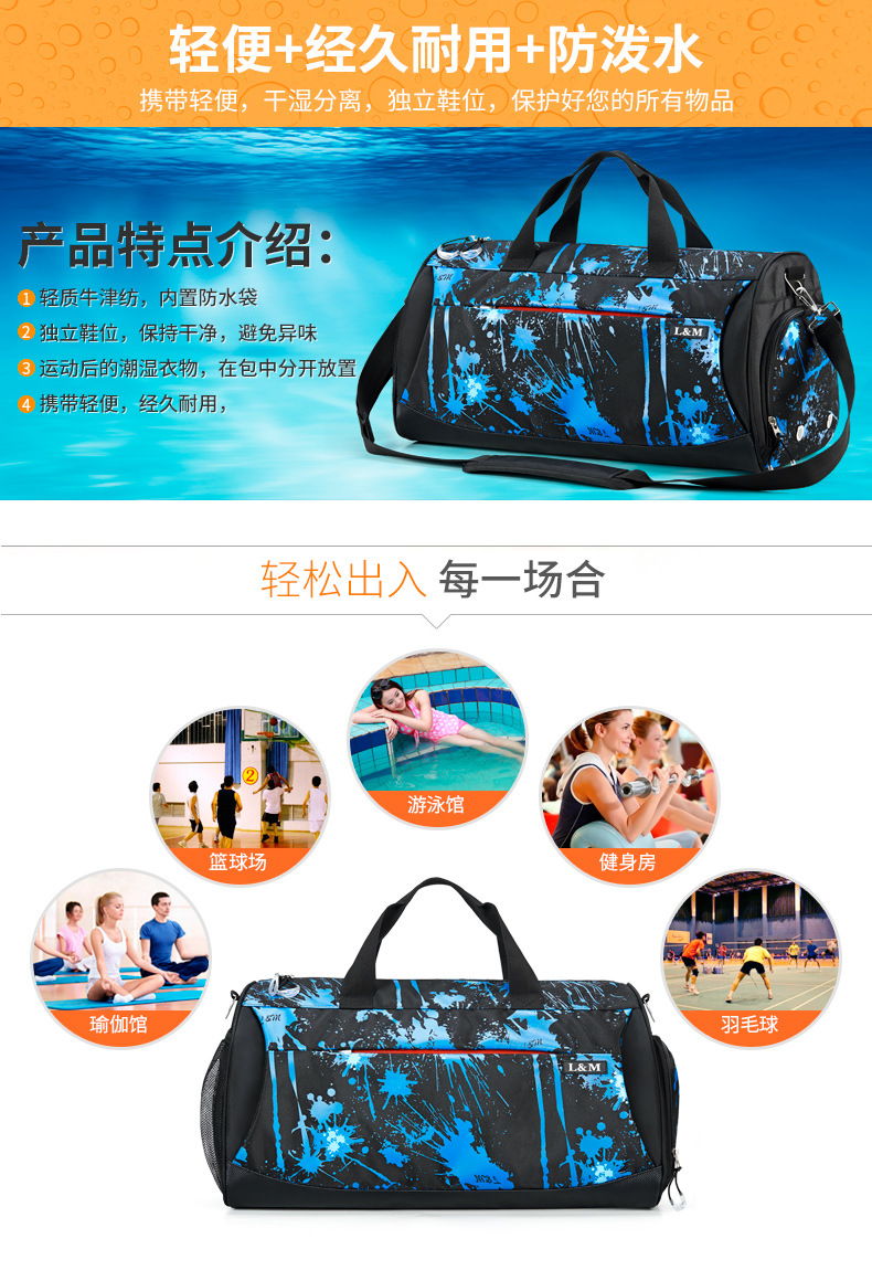 대용량 단거리 여행 가방 어깨 크로스 바디 보관 수하물 가방 옥스포드 천 습식 및 건조 분리 수영 피트니스 가방스토어 가기