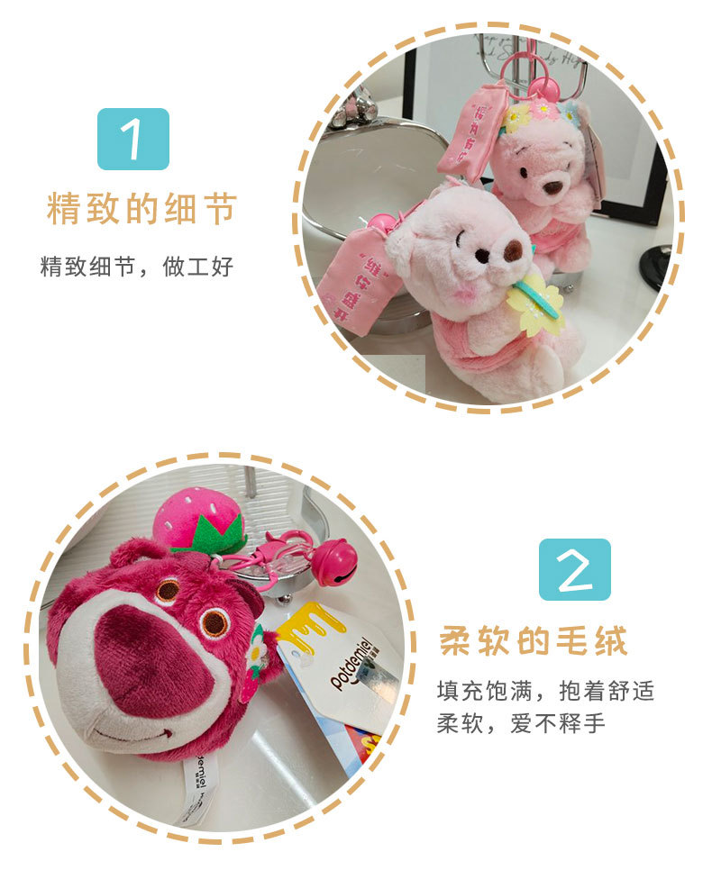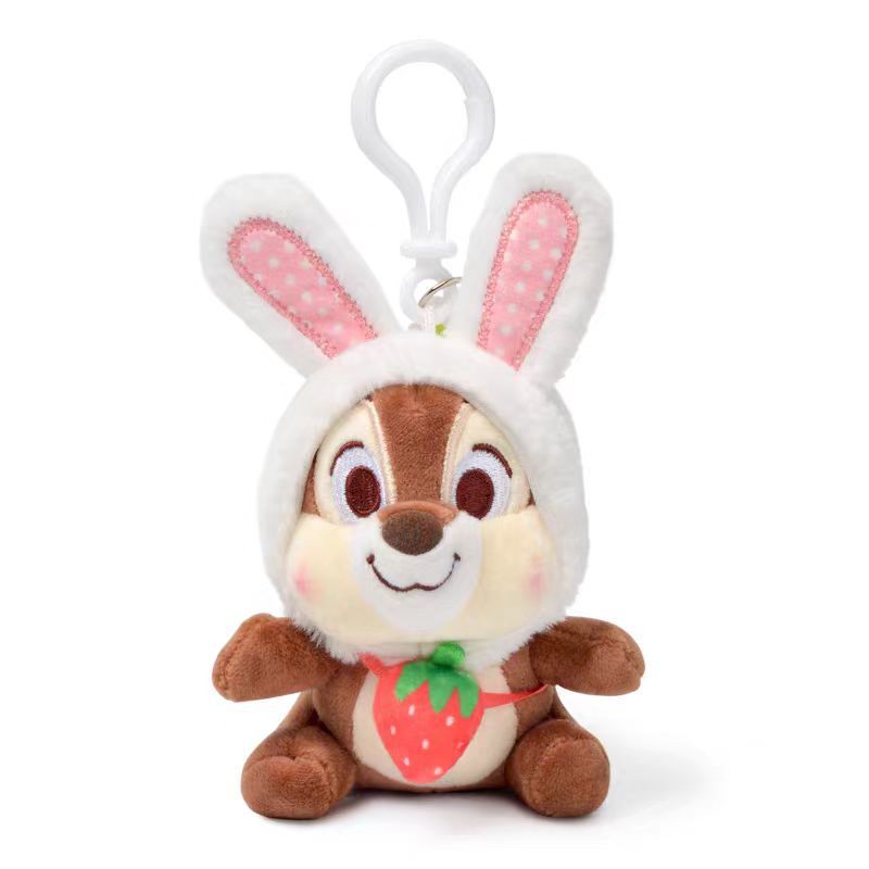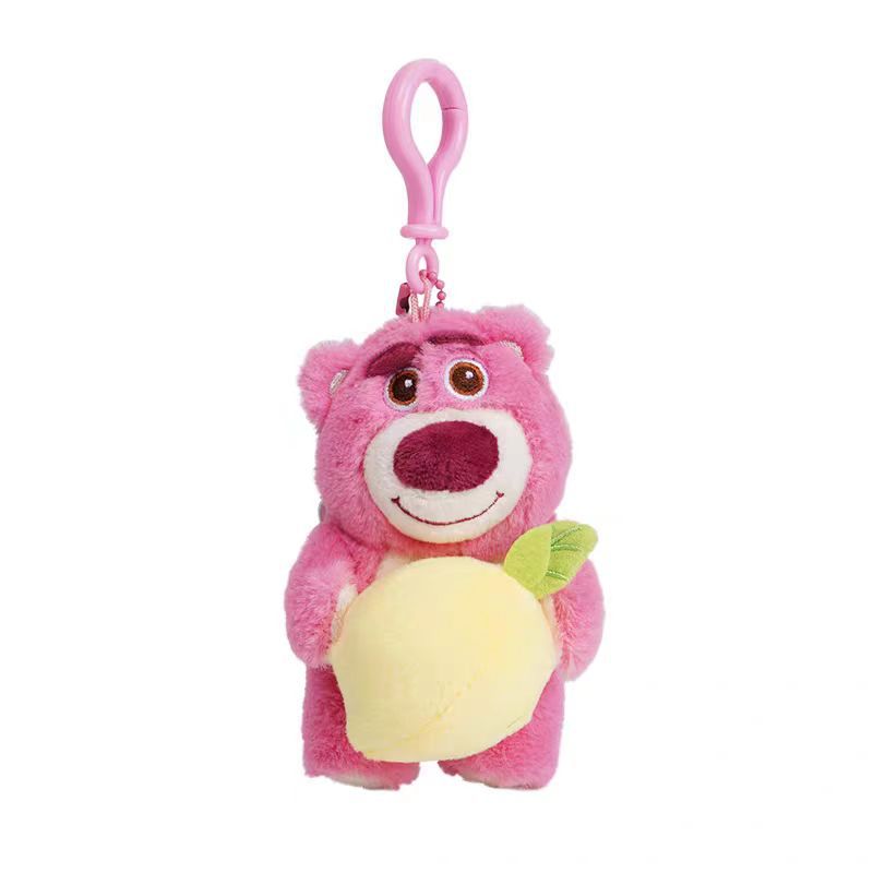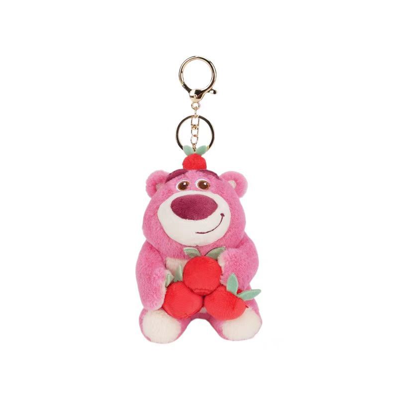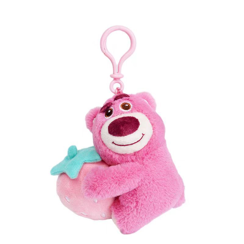 정품 디즈니 딸기 곰 인형 스티치 인형 플러시 장난감 미키 펜던트 배낭 펜던트 키 체인스토어 가기