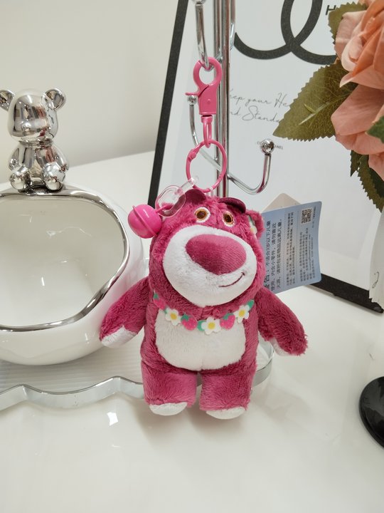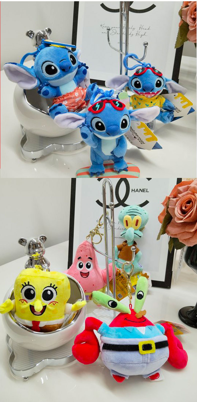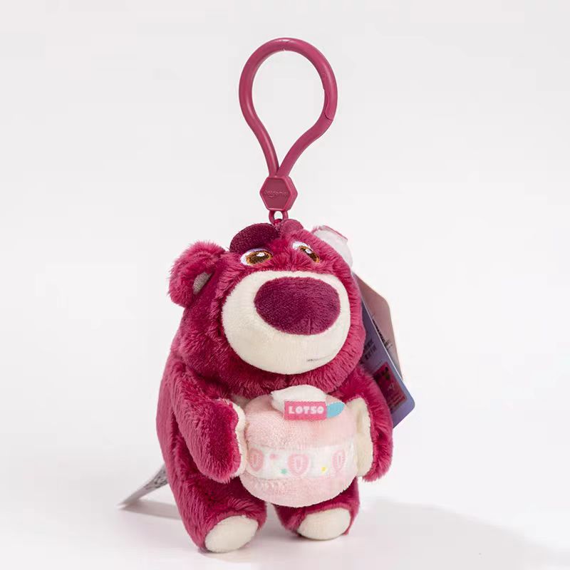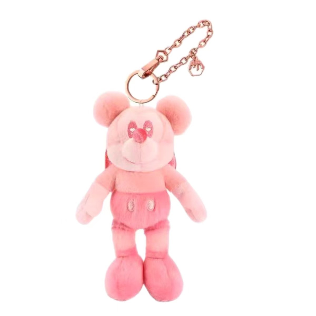 정품 디즈니 딸기 곰 인형 스티치 인형 플러시 장난감 미키 펜던트 배낭 펜던트 키 체인스토어 가기