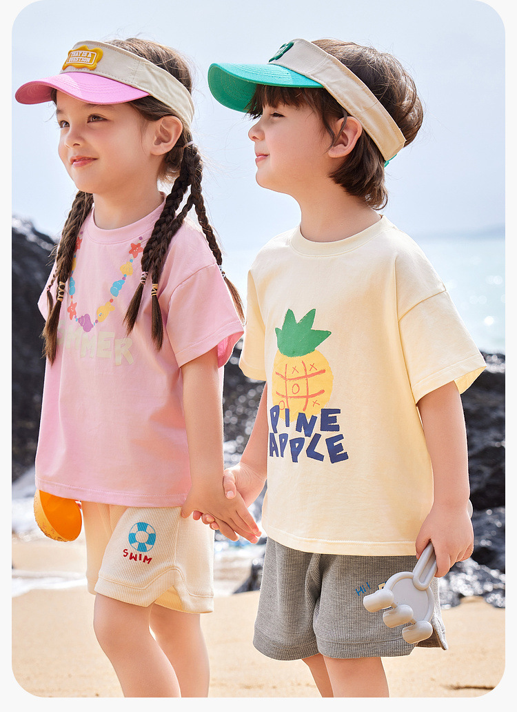 두두 아기 반팔 티셔츠 여름 만화 아기 티셔츠 여름 유행 소녀 최고의 아동복 패션스토어 가기
