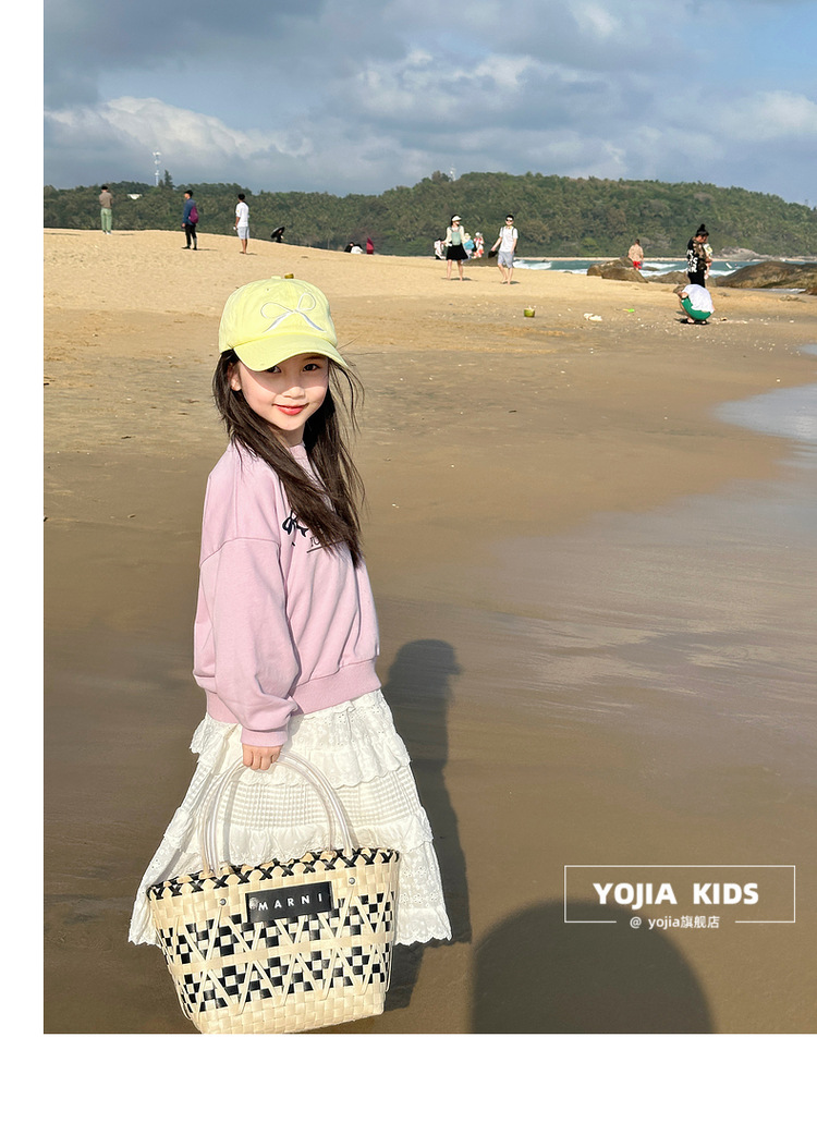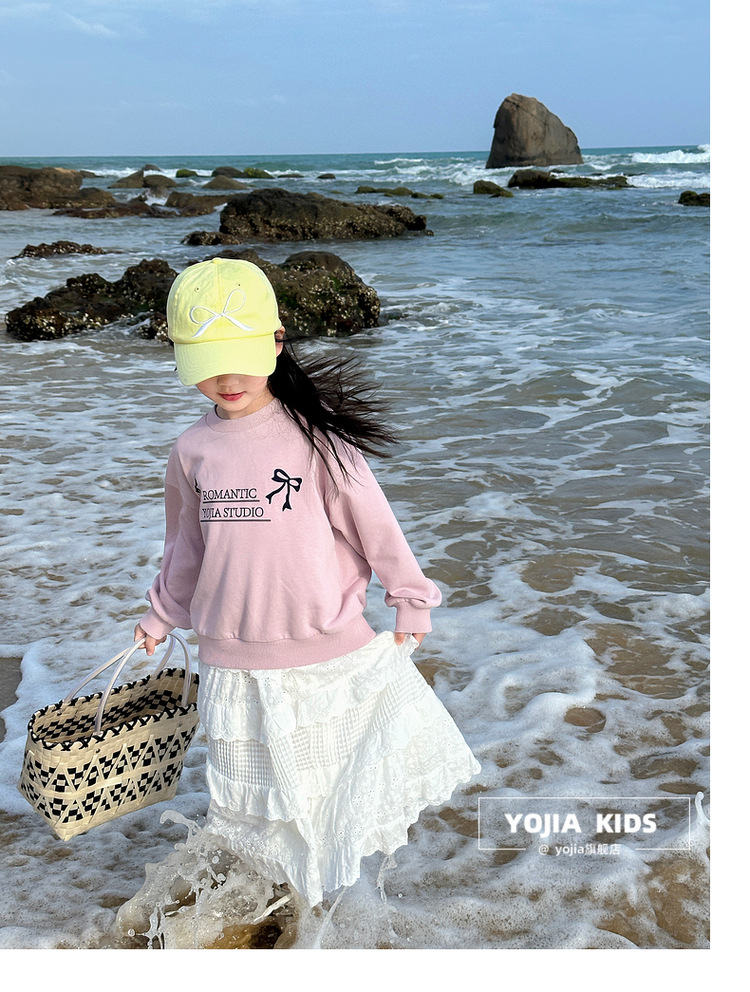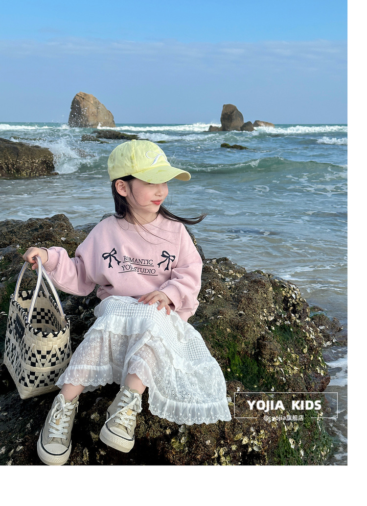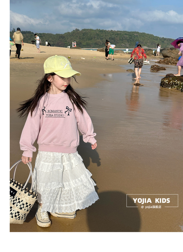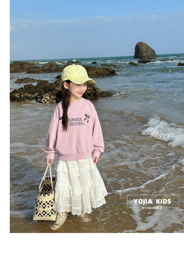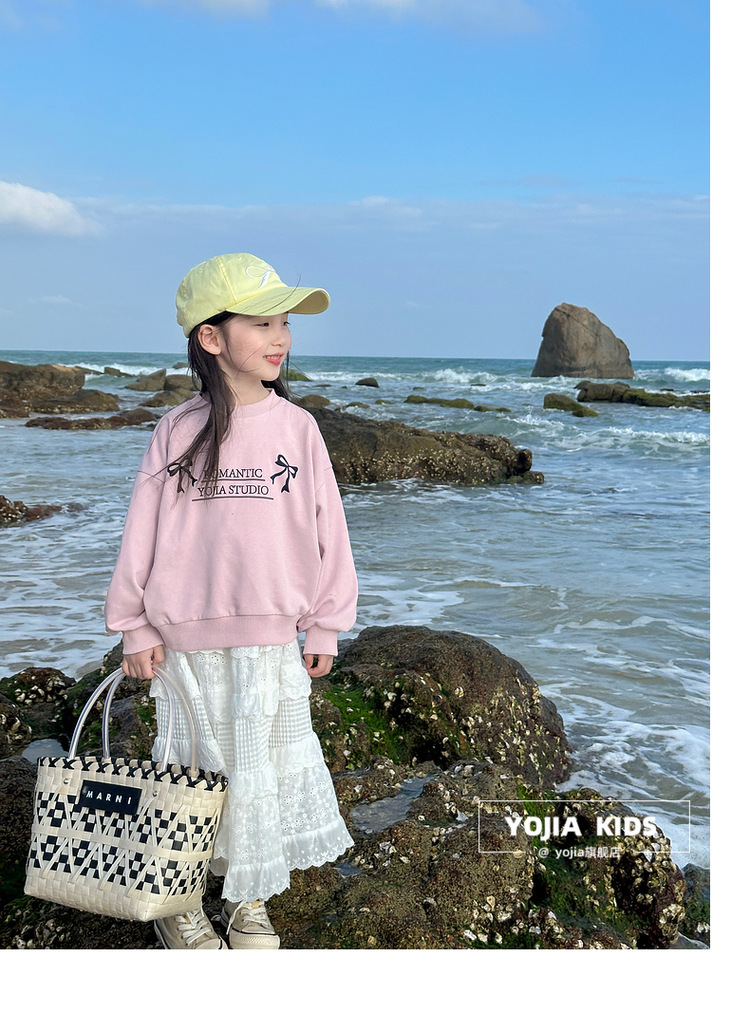 YOJIA 소녀 스웨터 2024 봄 새로운 온라인 인기 유행 어린 소녀 긴팔 상단 어린이 봄 옷스토어 가기