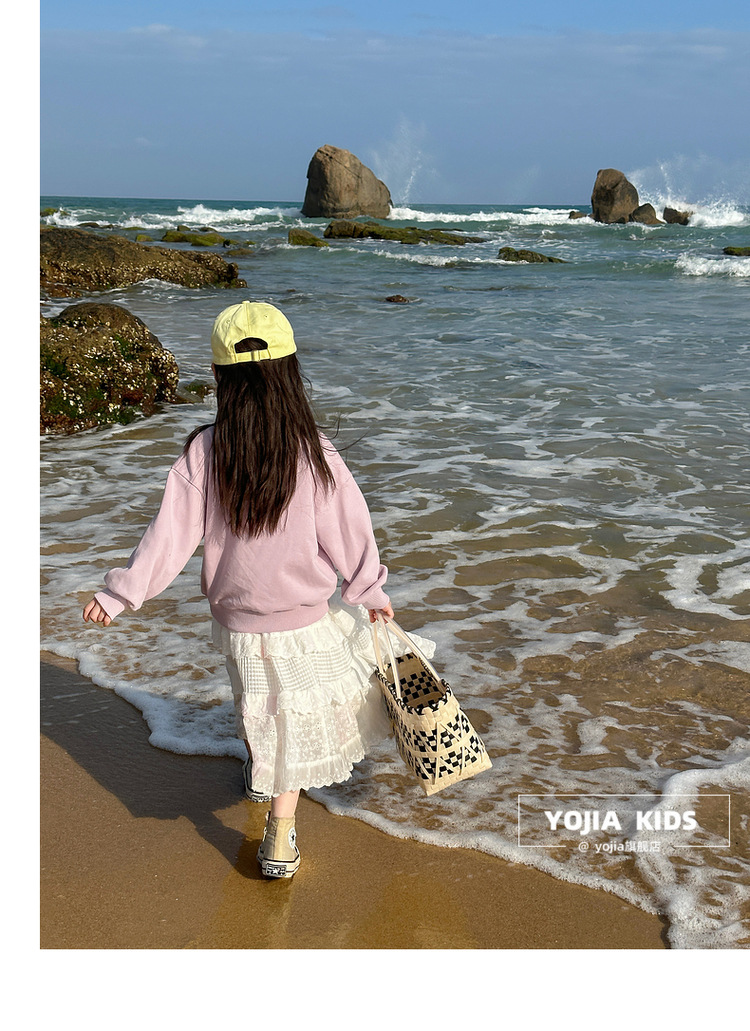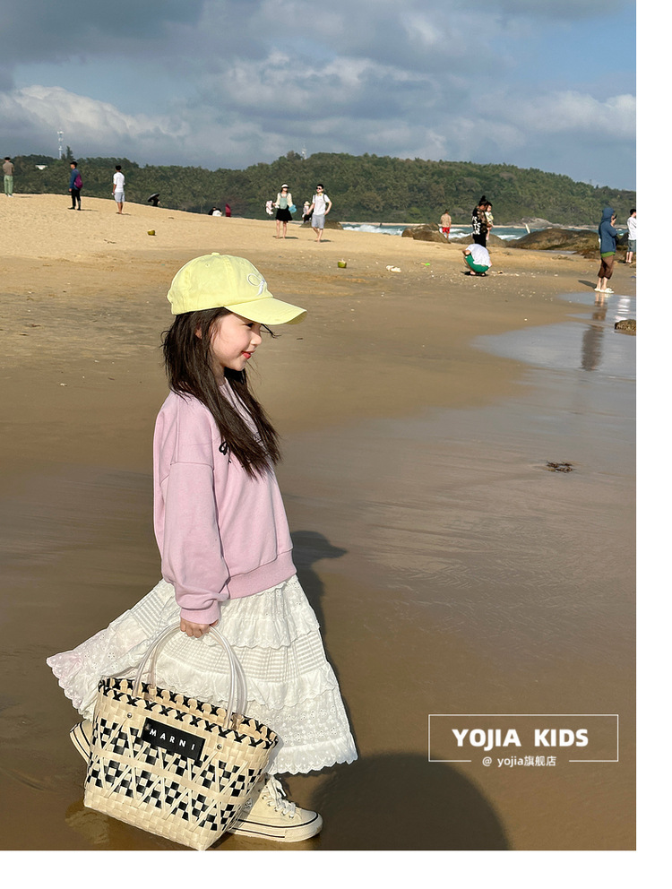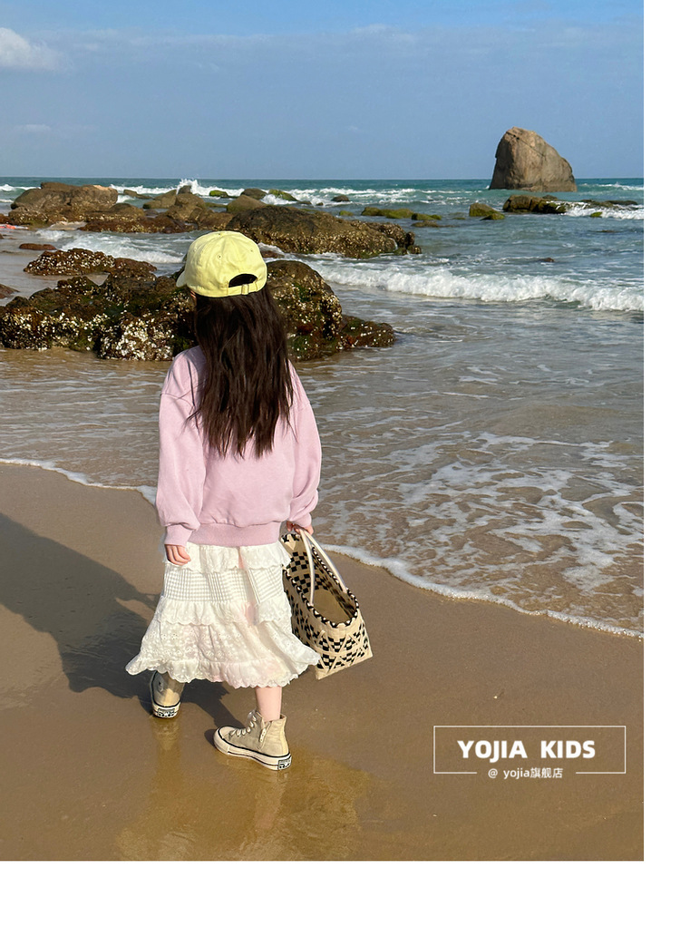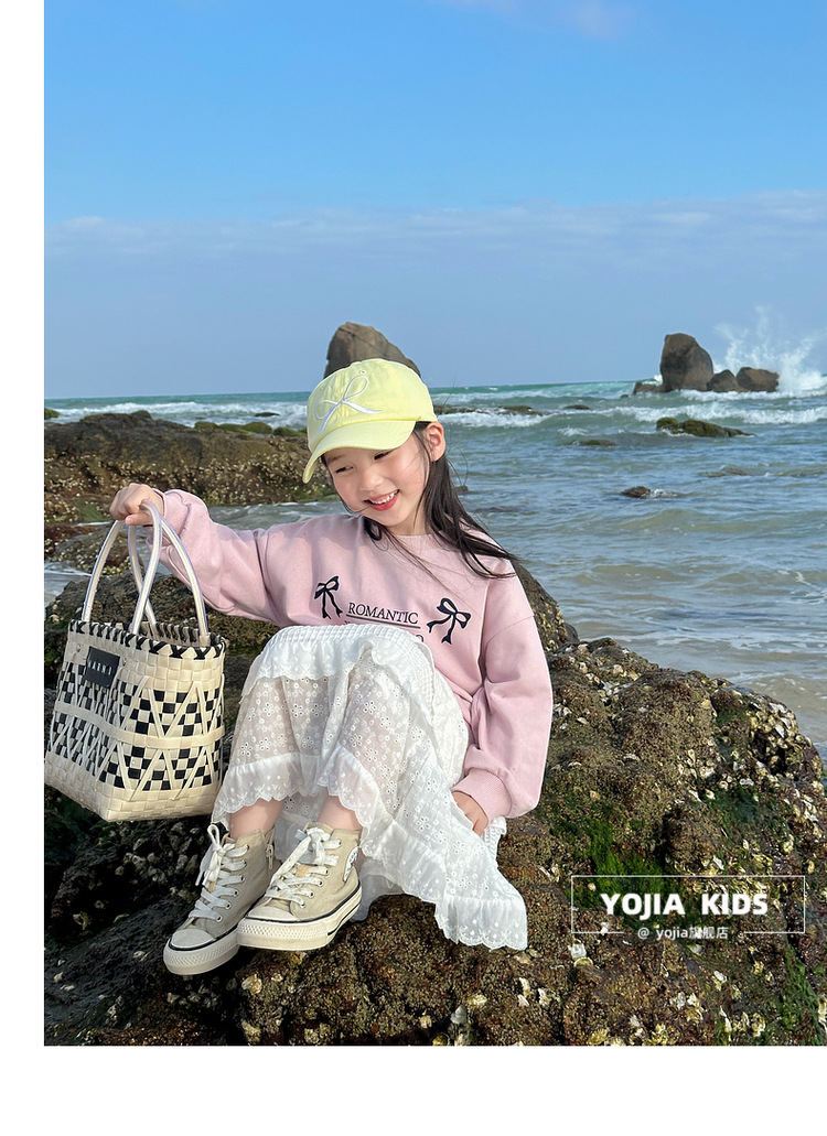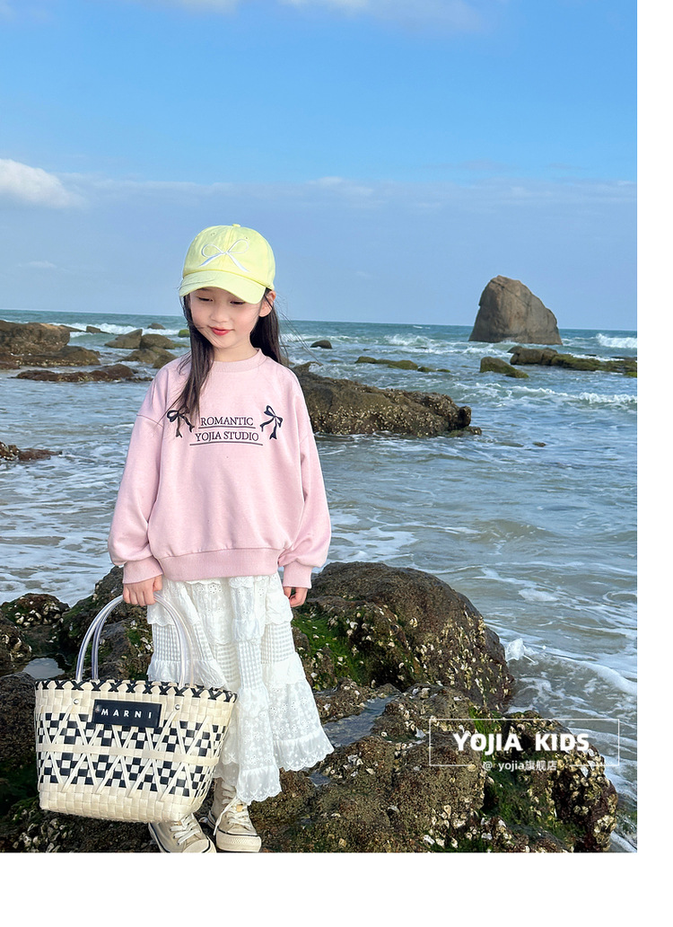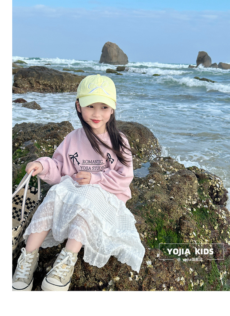 YOJIA 소녀 스웨터 2024 봄 새로운 온라인 인기 유행 어린 소녀 긴팔 상단 어린이 봄 옷스토어 가기