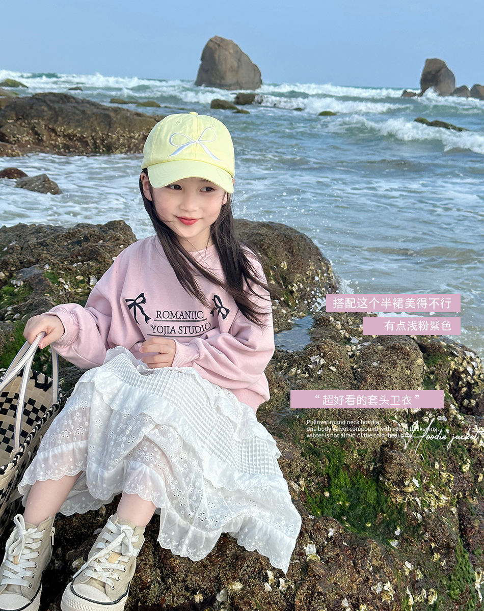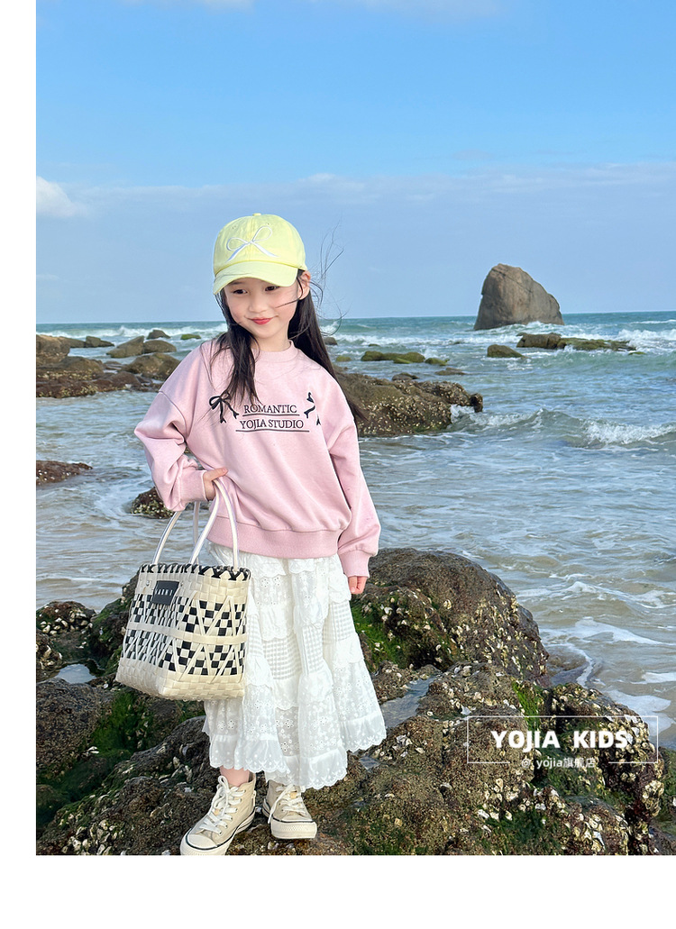 YOJIA 소녀 스웨터 2024 봄 새로운 온라인 인기 유행 어린 소녀 긴팔 상단 어린이 봄 옷