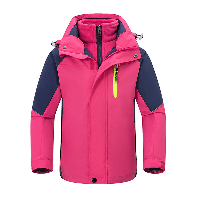야외 어린이 재킷 3 대 1 투피스 세트 소년 소녀 등산 두꺼운 방풍 방수 재킷 인쇄 자수