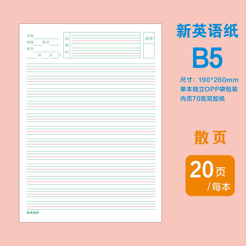 첨부 파일 초등 및 중등 학생 숙제 종이 16K 수학 종이 초안 종이 수평 선 밝은 선 숙제 운동 용지 70g