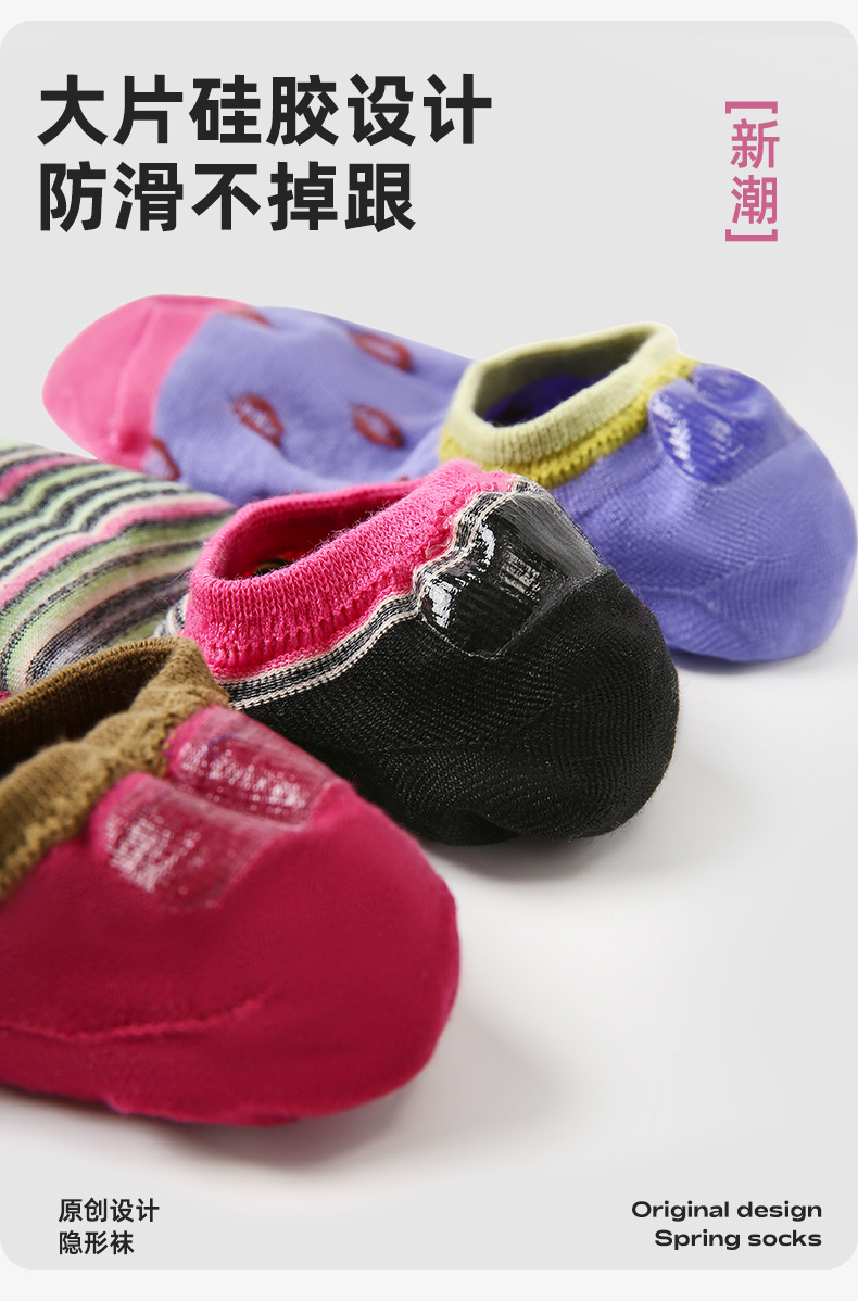 르네상스 양말 여성 양말 일본식 대비 색 폴카 도트 봄과 여름 보트 양말 여성용 미끄럼 미끄럼 방지 로우 컷 보이지 않는 양말