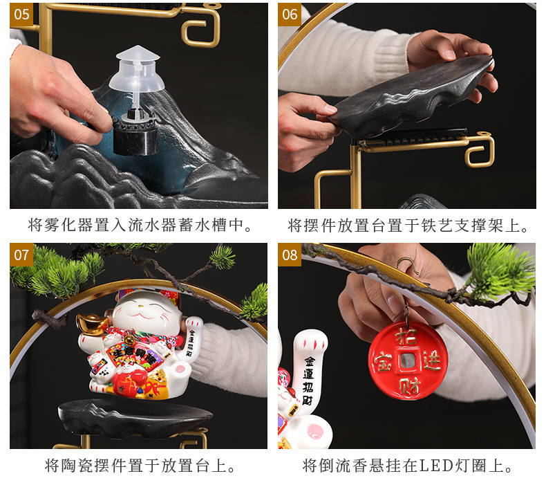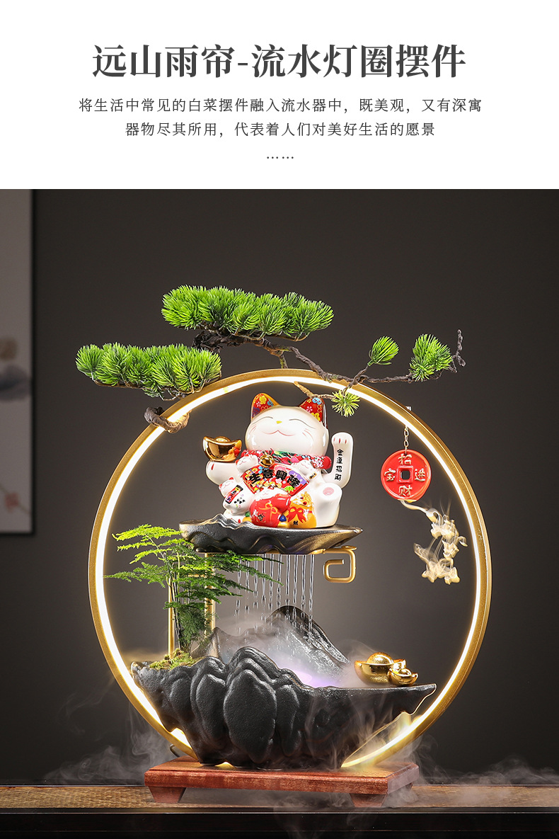 오프닝 선물 행운의 고양이 장식 자동 흔들리는 프론트 데스크 홈 거실 사무실 순환 물 장식스토어 가기