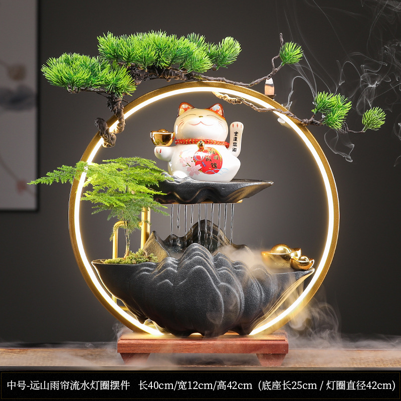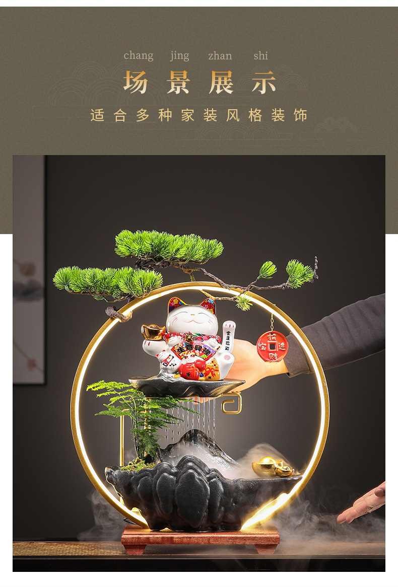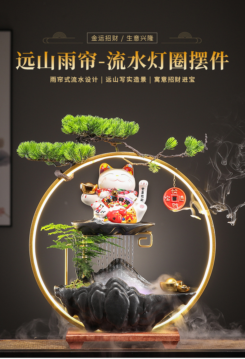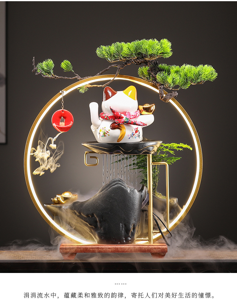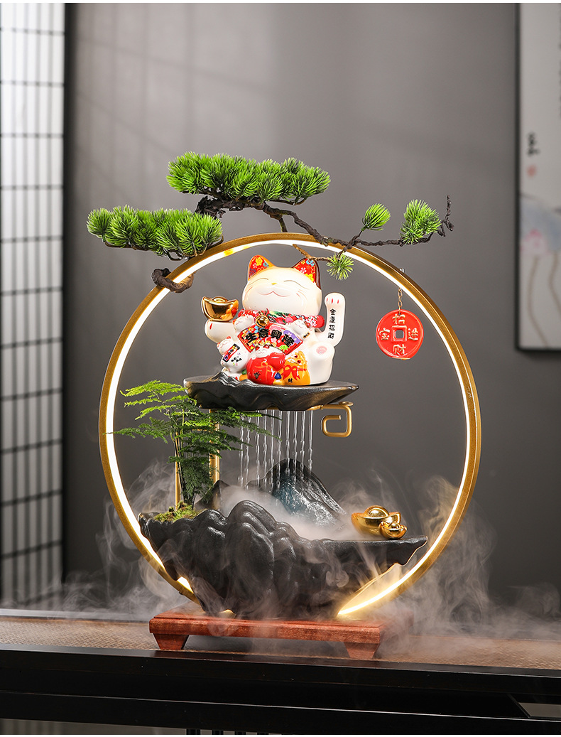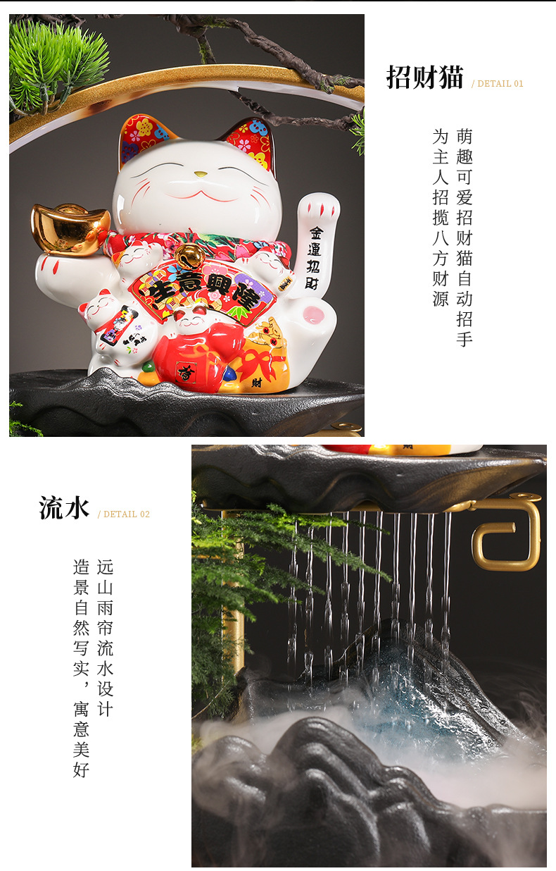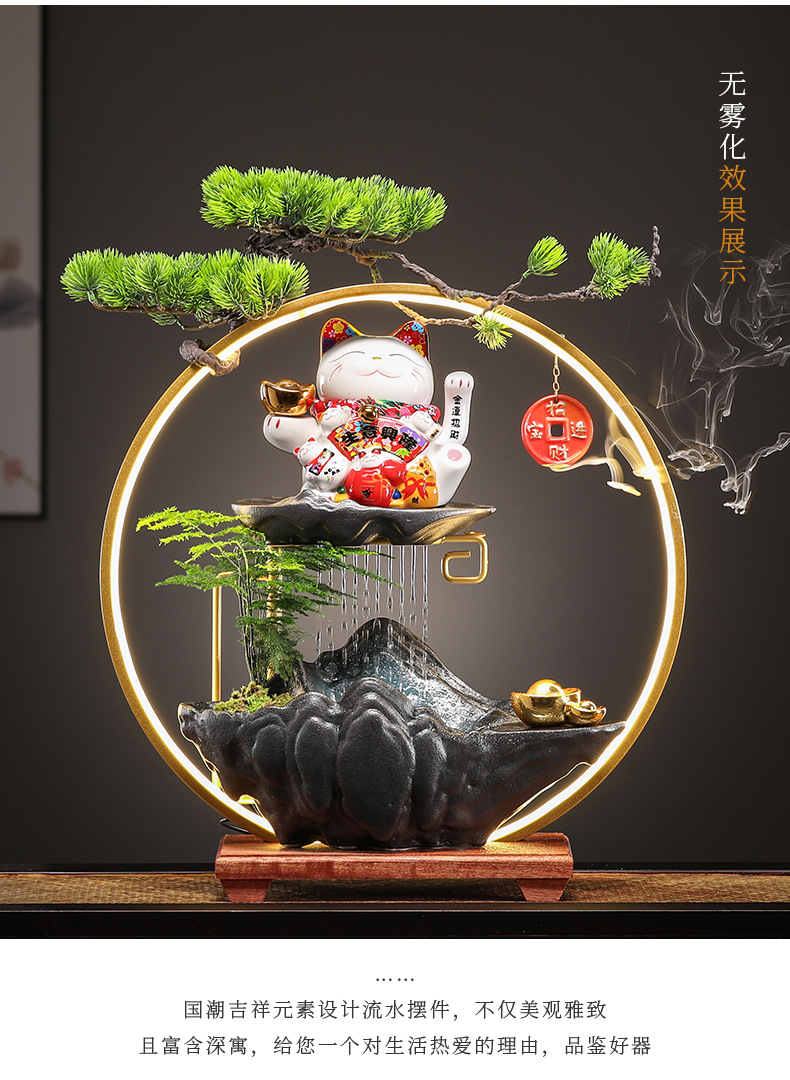오프닝 선물 행운의 고양이 장식 자동 흔들리는 프론트 데스크 홈 거실 사무실 순환 물 장식