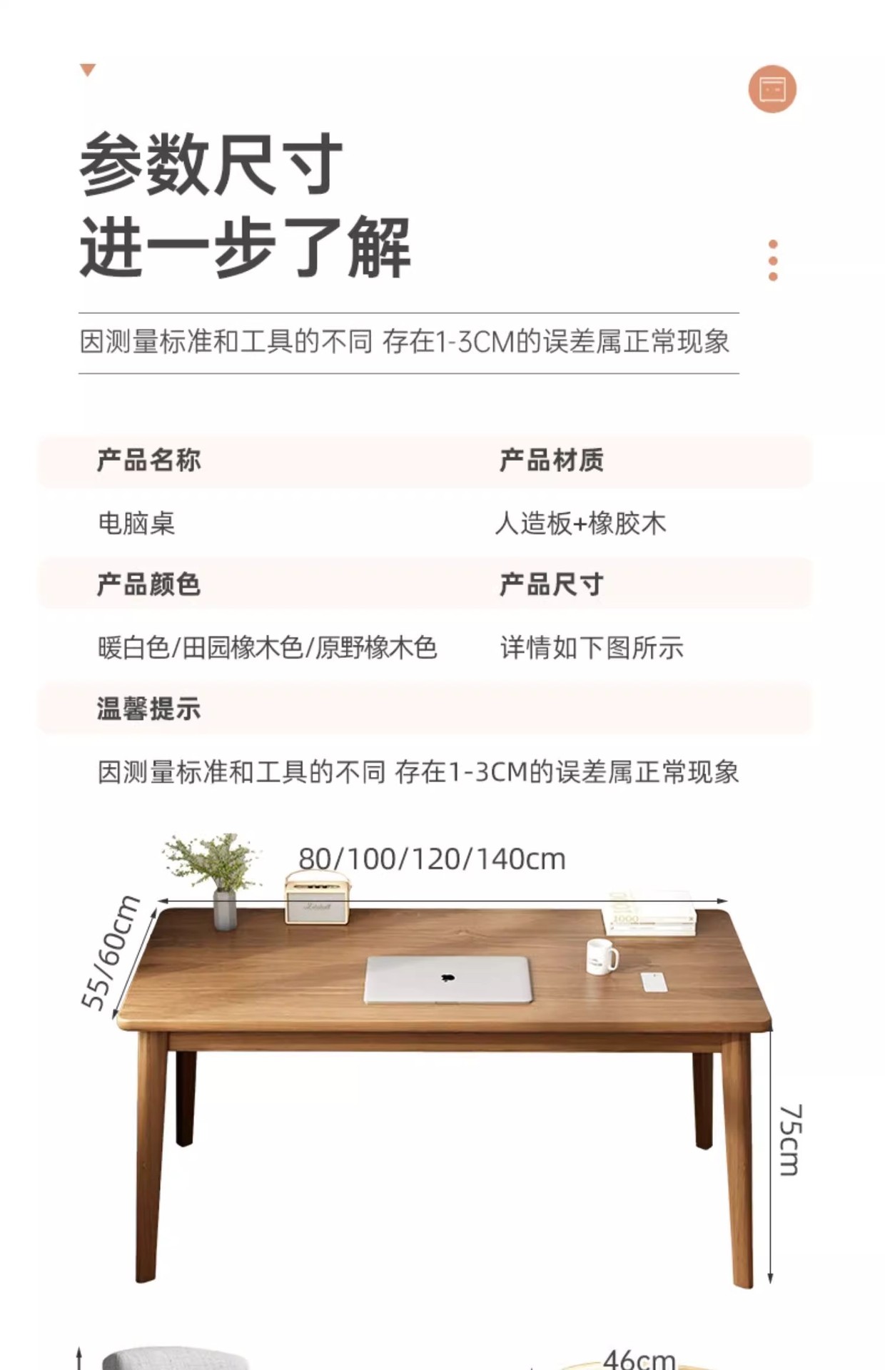 • [단일 테이블] Yuanye 오크 컬러 80*55*75cm