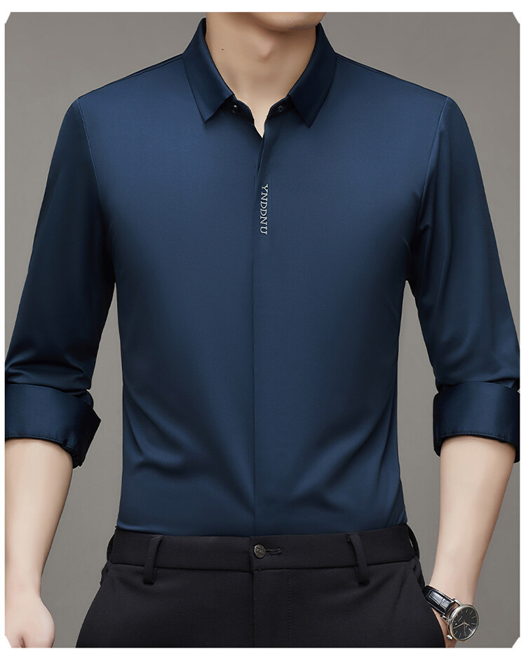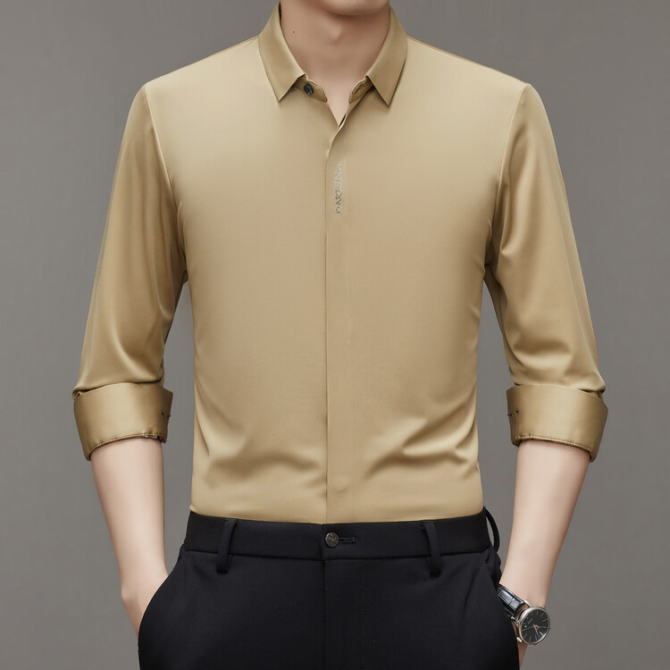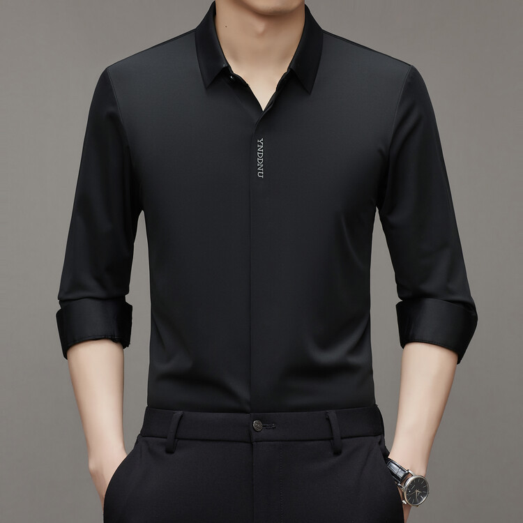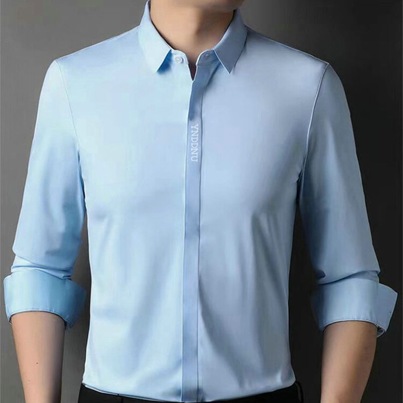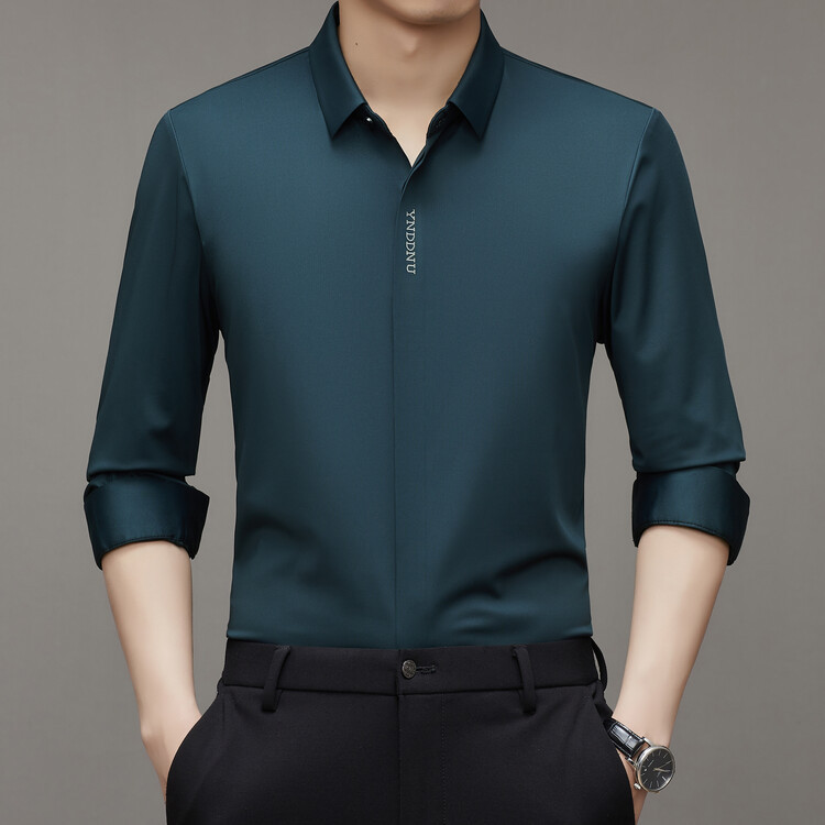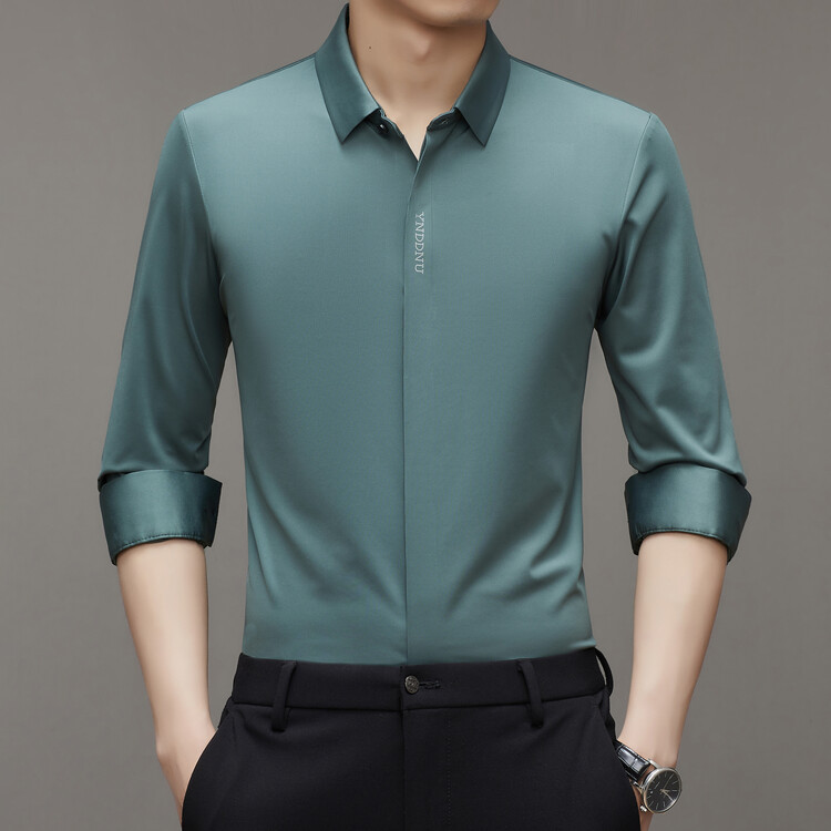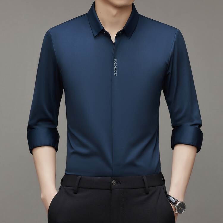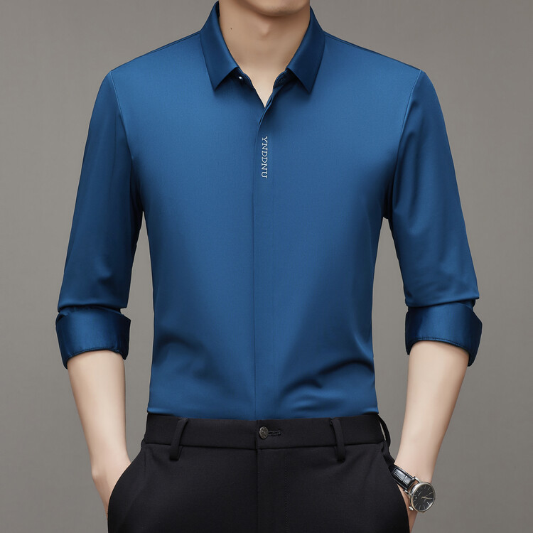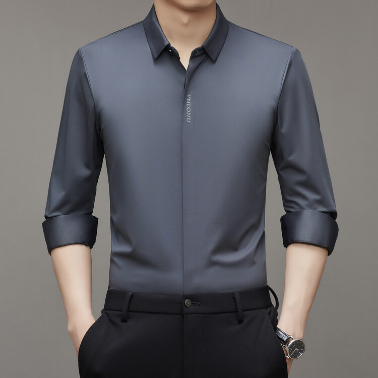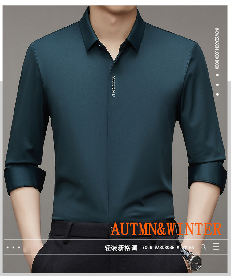 봄과 가을 중년 남성 긴팔 셔츠 비즈니스 캐주얼 다크 플래켓 셔츠 스트레치 탑 카디건스토어 가기