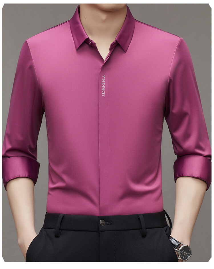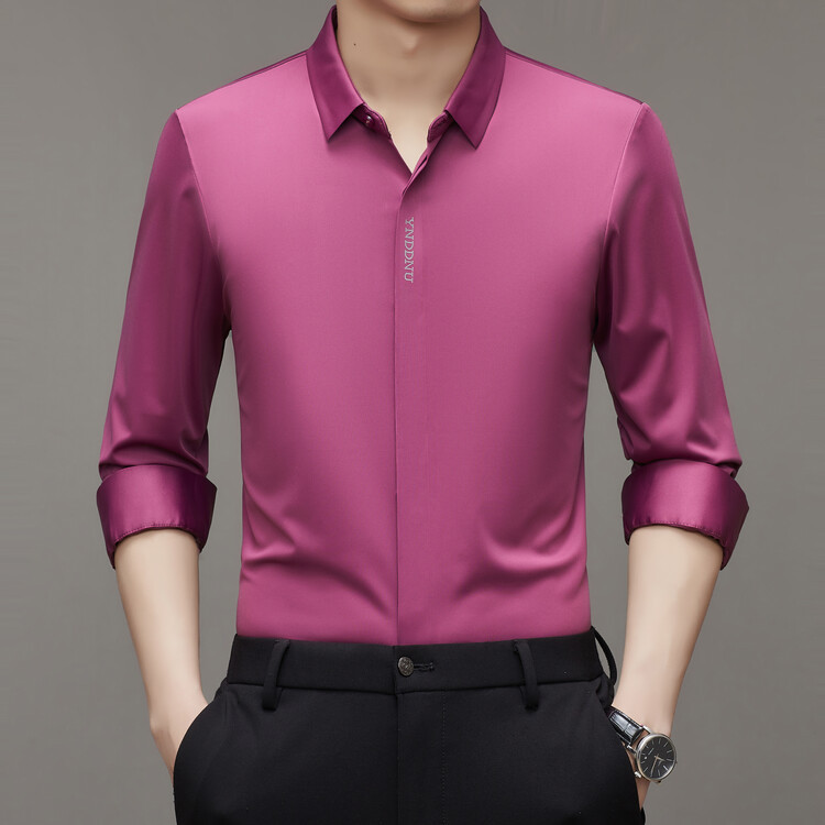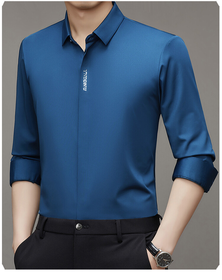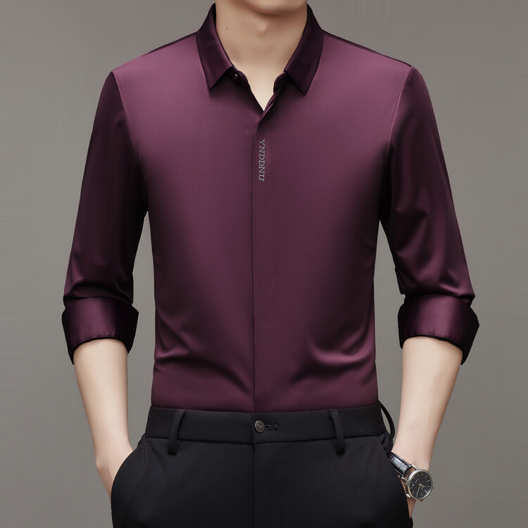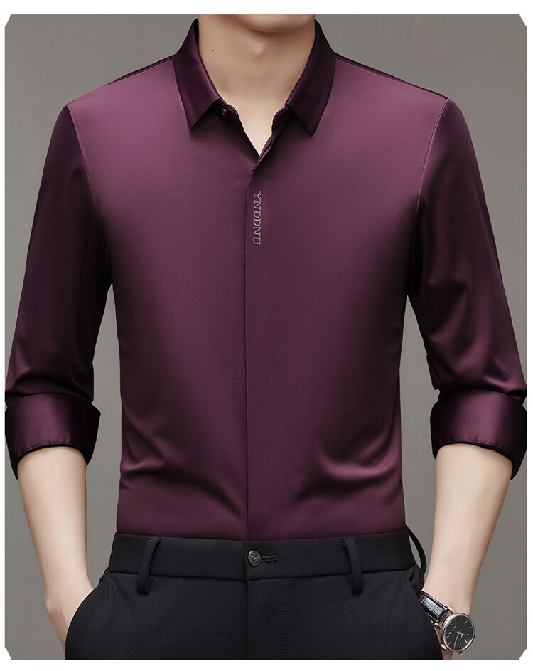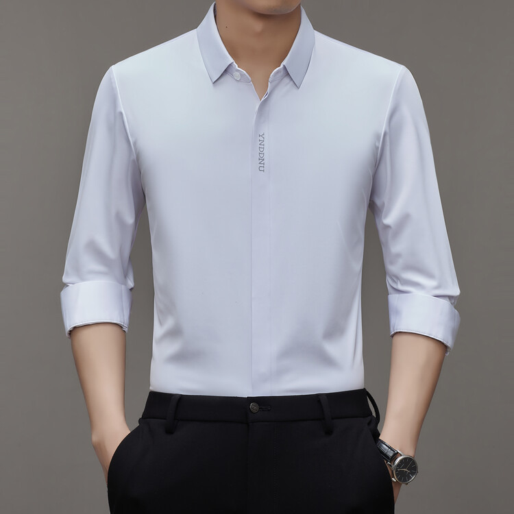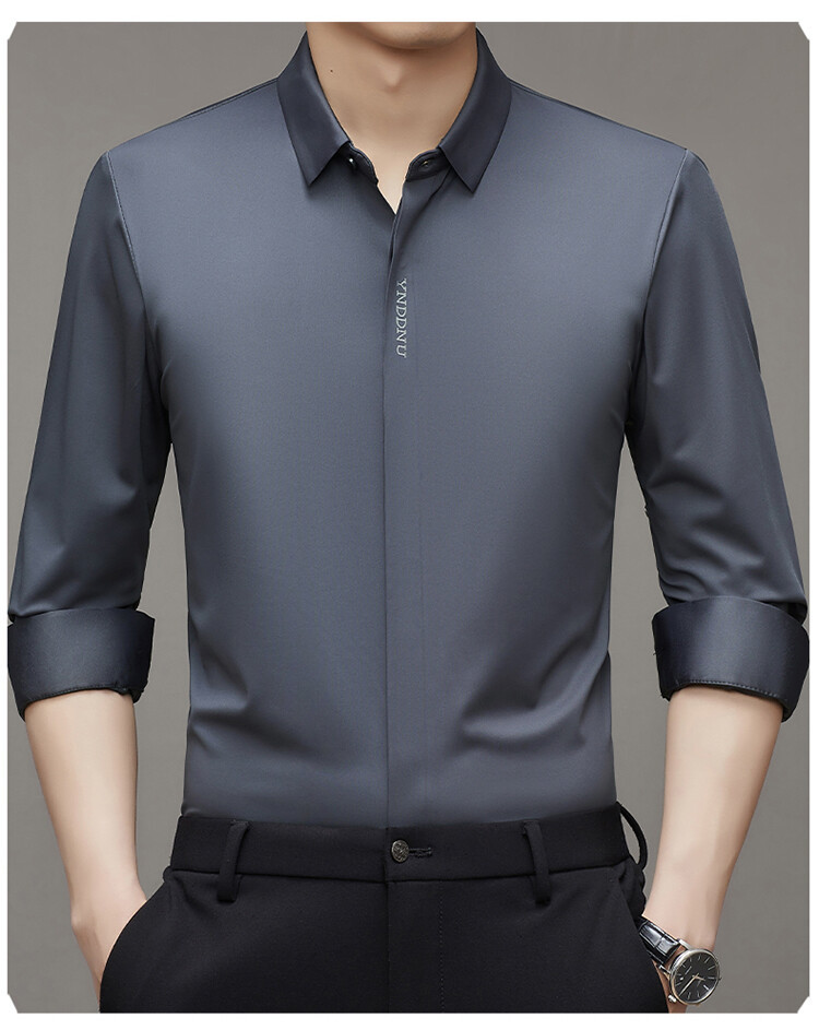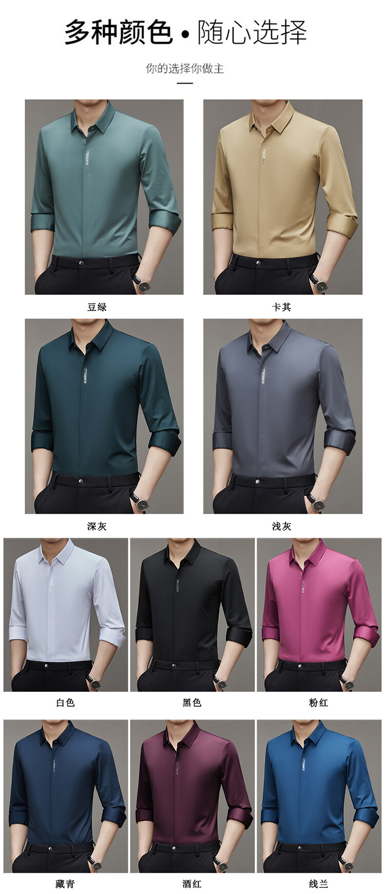 봄과 가을 중년 남성 긴팔 셔츠 비즈니스 캐주얼 다크 플래켓 셔츠 스트레치 탑 카디건스토어 가기