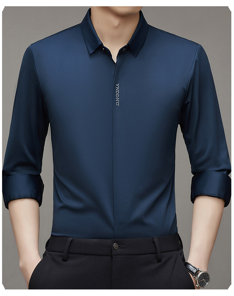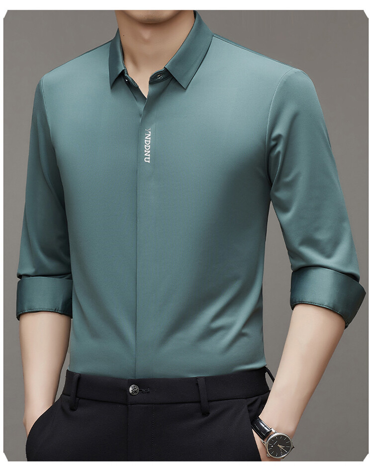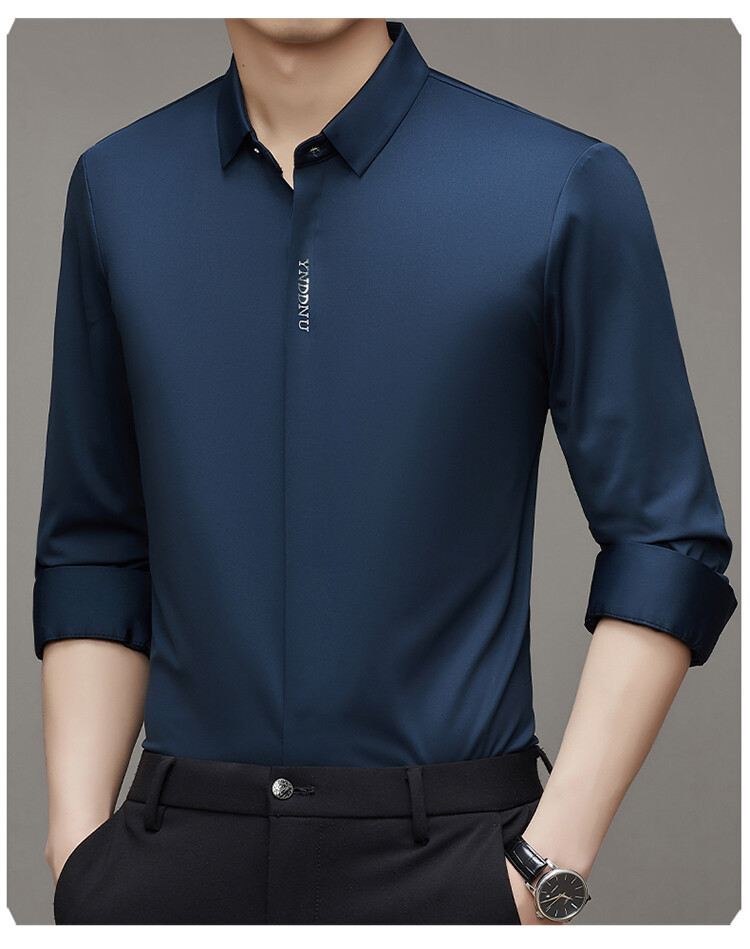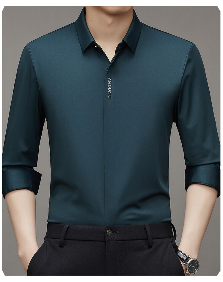 봄과 가을 중년 남성 긴팔 셔츠 비즈니스 캐주얼 다크 플래켓 셔츠 스트레치 탑 카디건