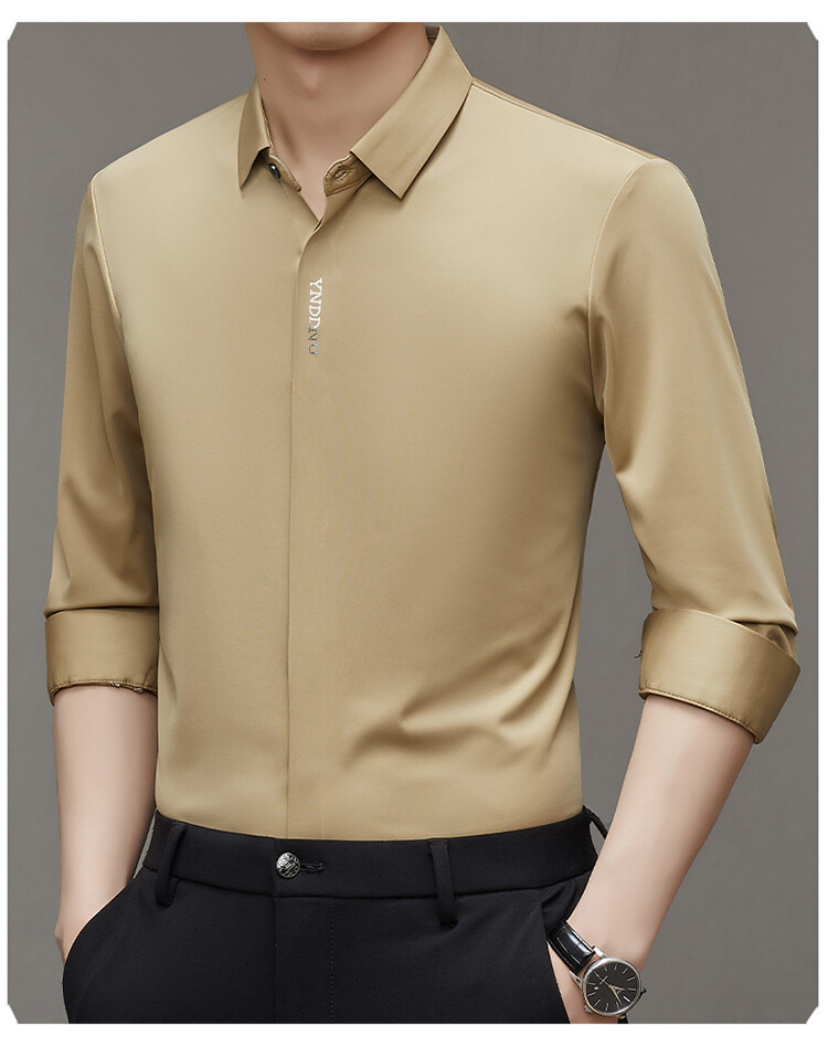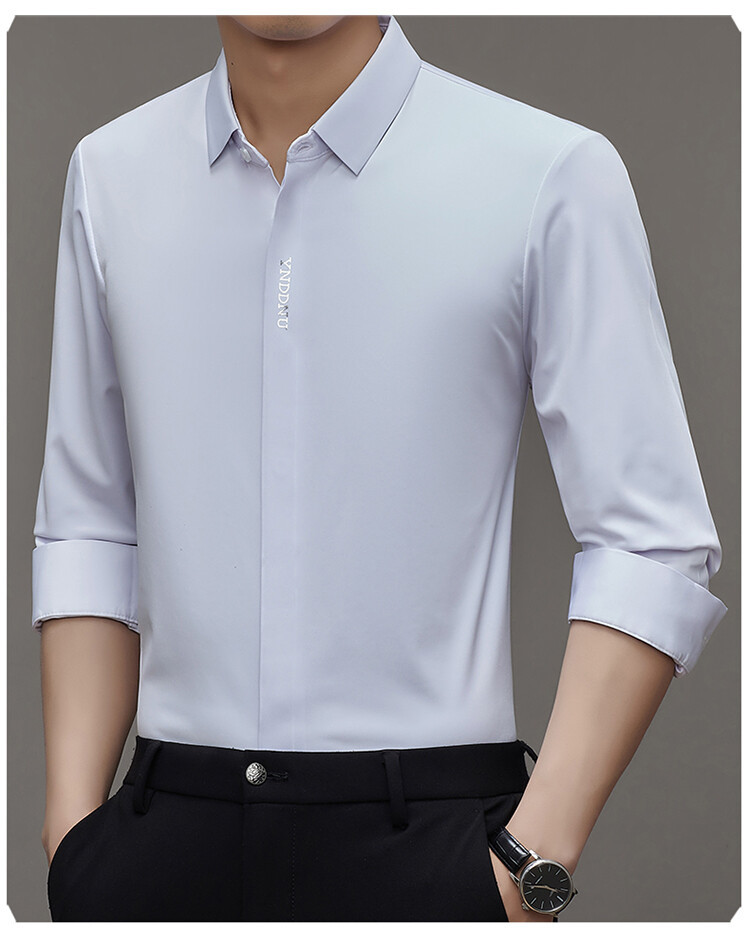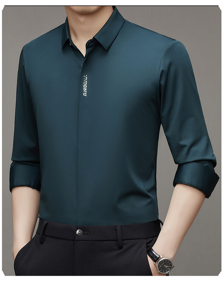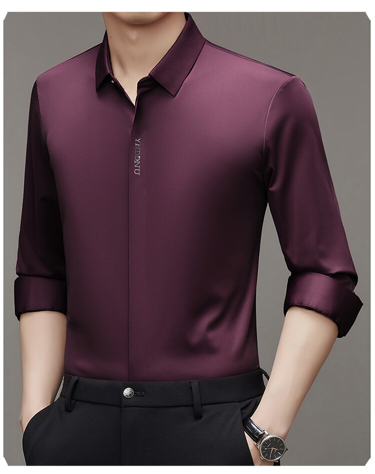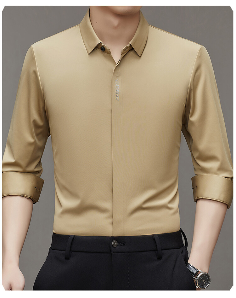 봄과 가을 중년 남성 긴팔 셔츠 비즈니스 캐주얼 다크 플래켓 셔츠 스트레치 탑 카디건