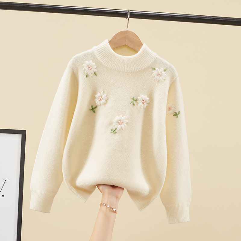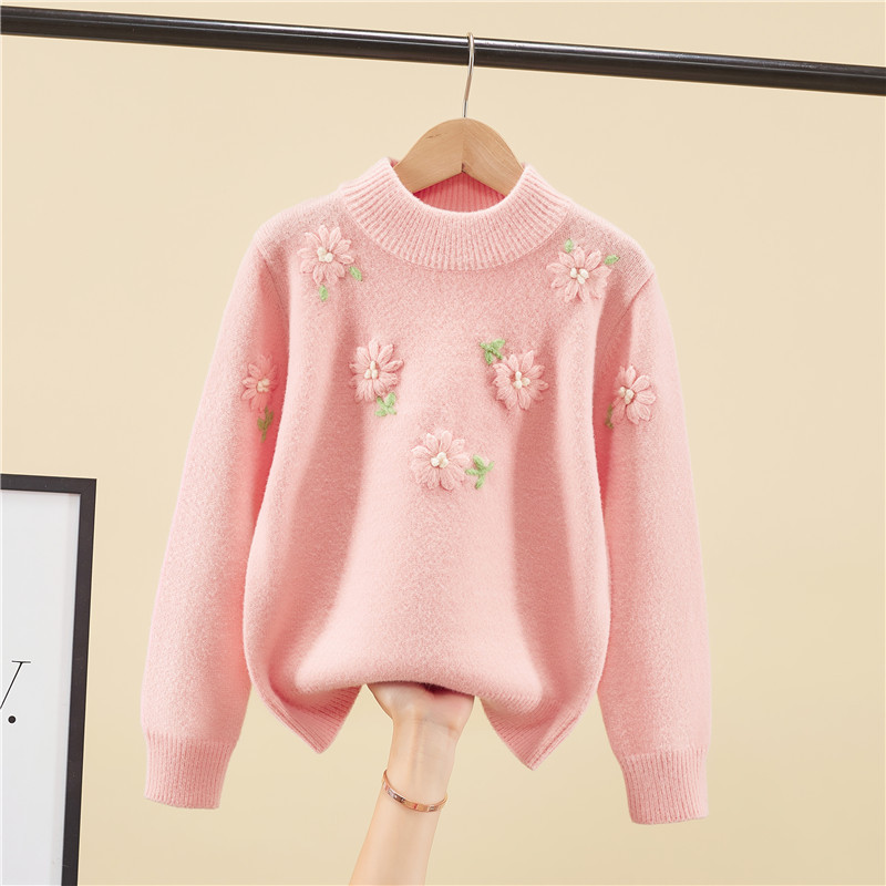 수제 꽃 소녀 스웨터 2022 새로운 어린 소녀 스웨터 가을과 겨울 풀오버 어린이 따뜻한 바닥 셔츠