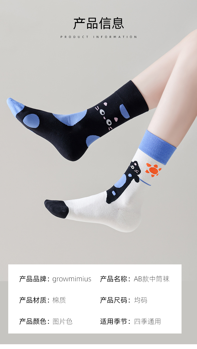 원래 AB 양말 비대칭 중간 종아리 빗질면 양말 크리에이티브 넷 레드 만다린 오리 양말 패션 개성 트렌디 한 커플 양말스토어 가기