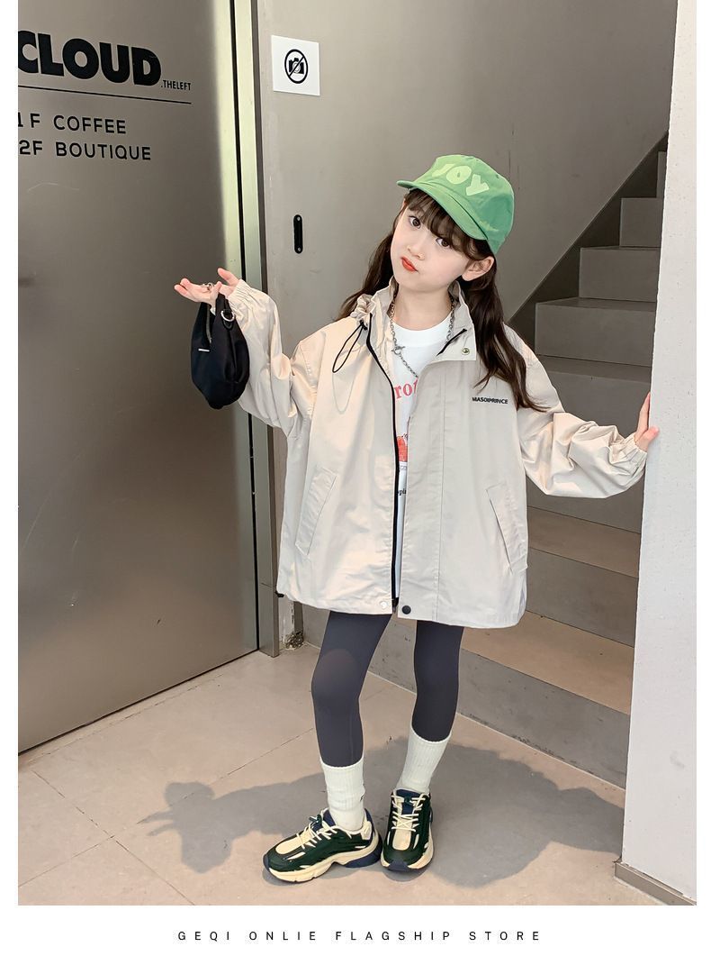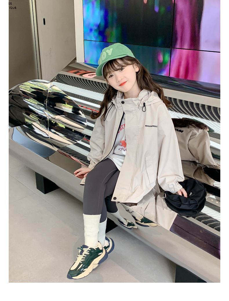 소녀 겨울 재킷 가을 2024 새로운 서양식 어린이 봄과 가을 어린 소녀 스포츠 후드 재킷