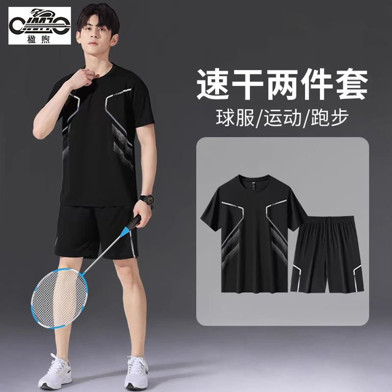 여름 스포츠 세트 남자의 얇은 패션 반팔 티셔츠 반바지 캐주얼 야외 스포츠 유니폼 공장 직접 판매스토어 가기