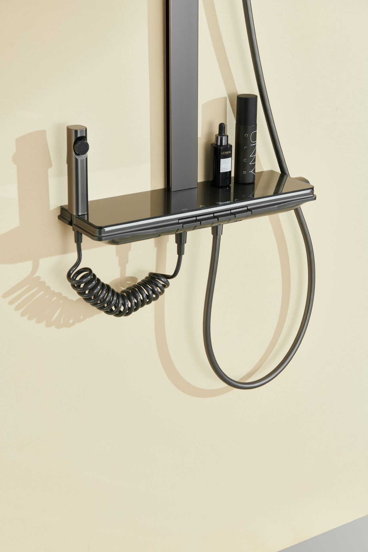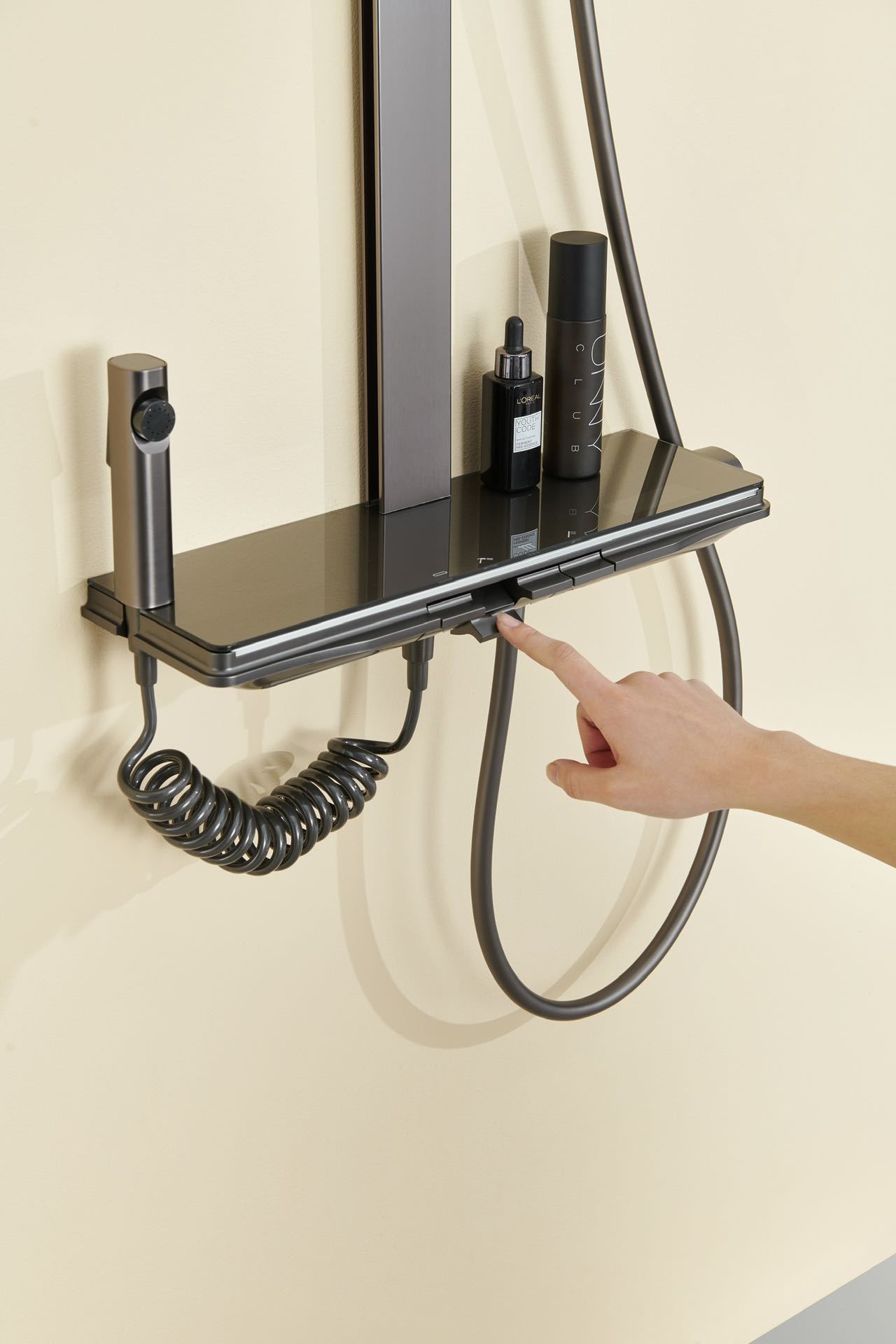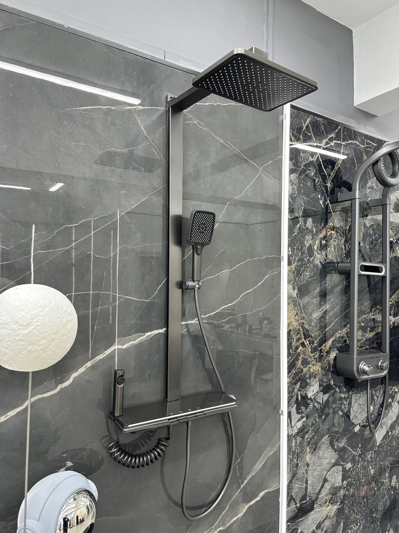 건메탈 색상 샤워기 세트 가정용 욕실 피아노 키 디자인 옥 샤워 스마트 레인 샤워기스토어 가기