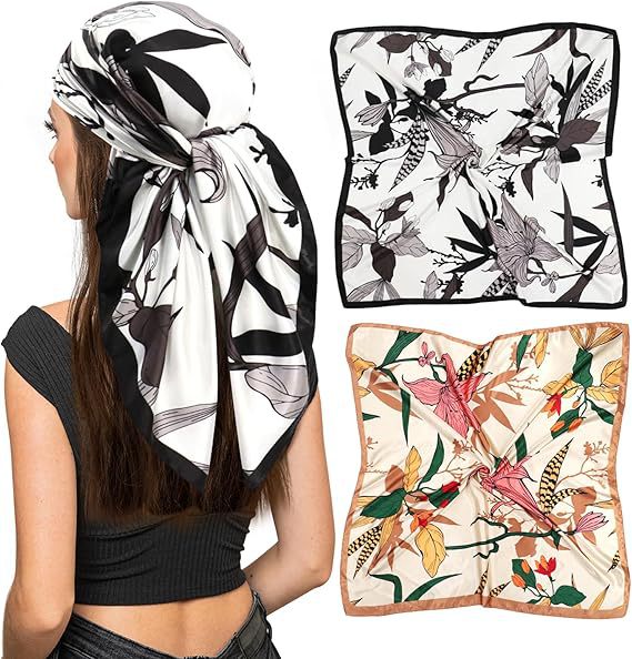 오랜 전통의 유럽풍 인기 아마존 사각 스카프 90cm 새틴 실크 느낌 스카프 재고 도매