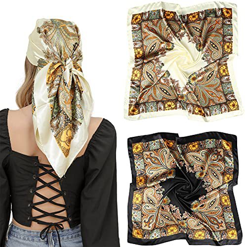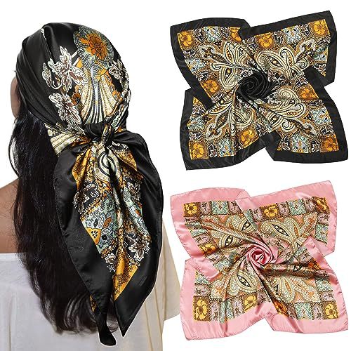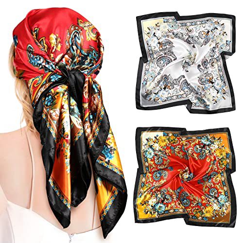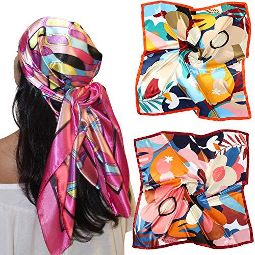 큰 새틴 스퀘어 헤드 스카프-꽃 머리 스카프처럼 실크스토어 가기