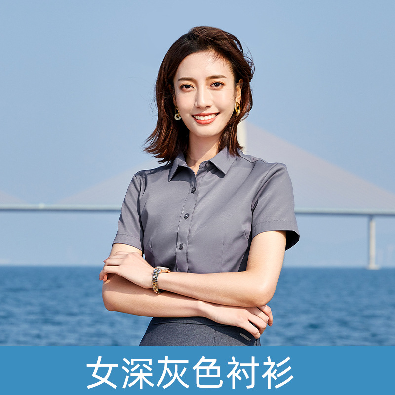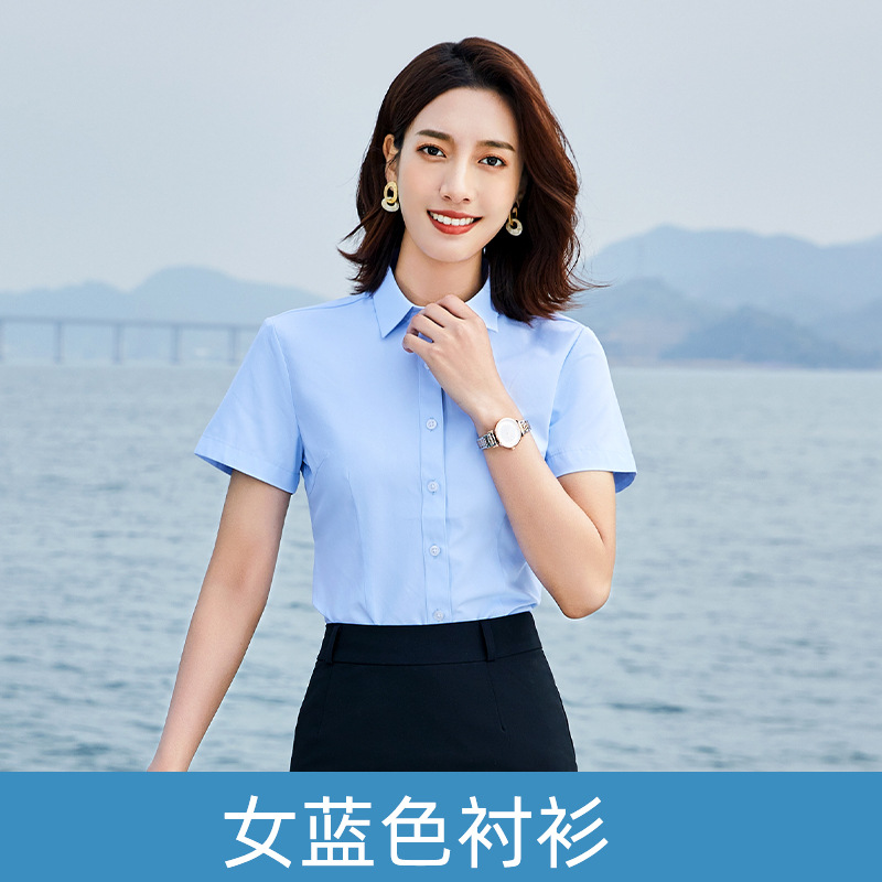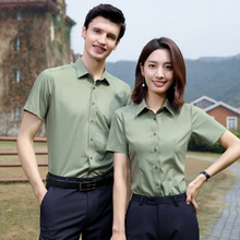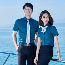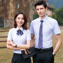 남녀공용 반팔 고급 능직 셔츠, 여성 정장, 4S 매장 단체 판매 직원 전문 셔츠, 자수 로고