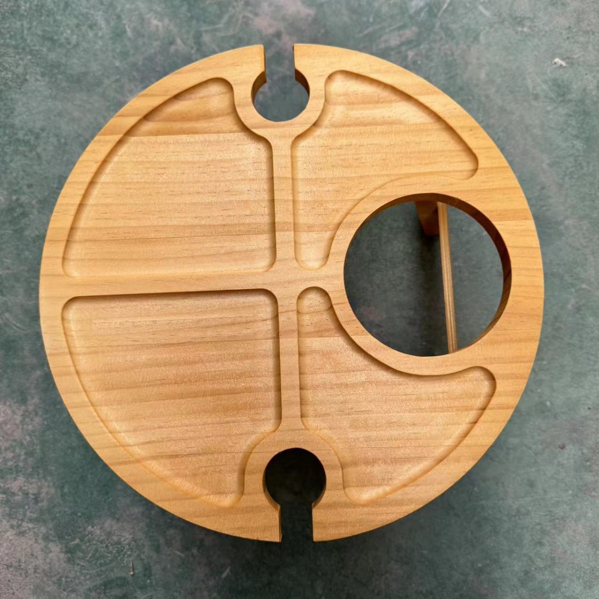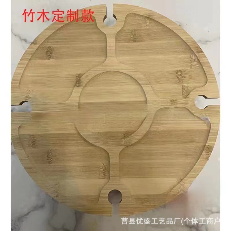 나무 휴대용 야외 해변 캠핑 디너 플레이트 솔리드 우드 고블릿 랙 유럽식 멀티 컴파트먼트 과일 스낵 스토리지 플레이트