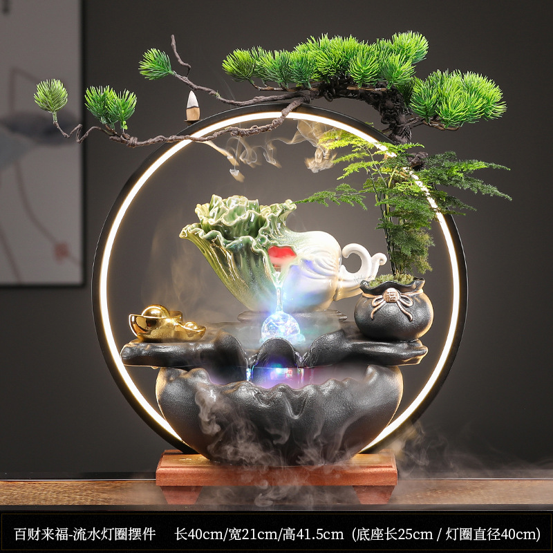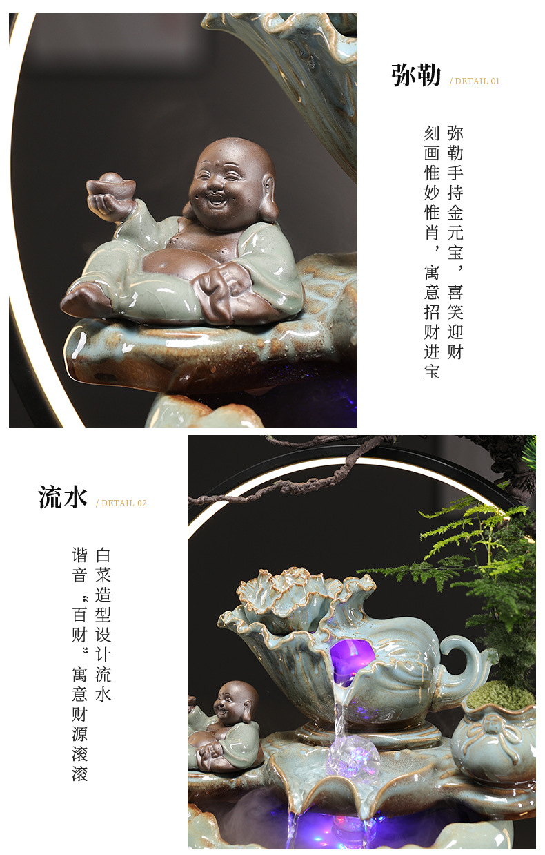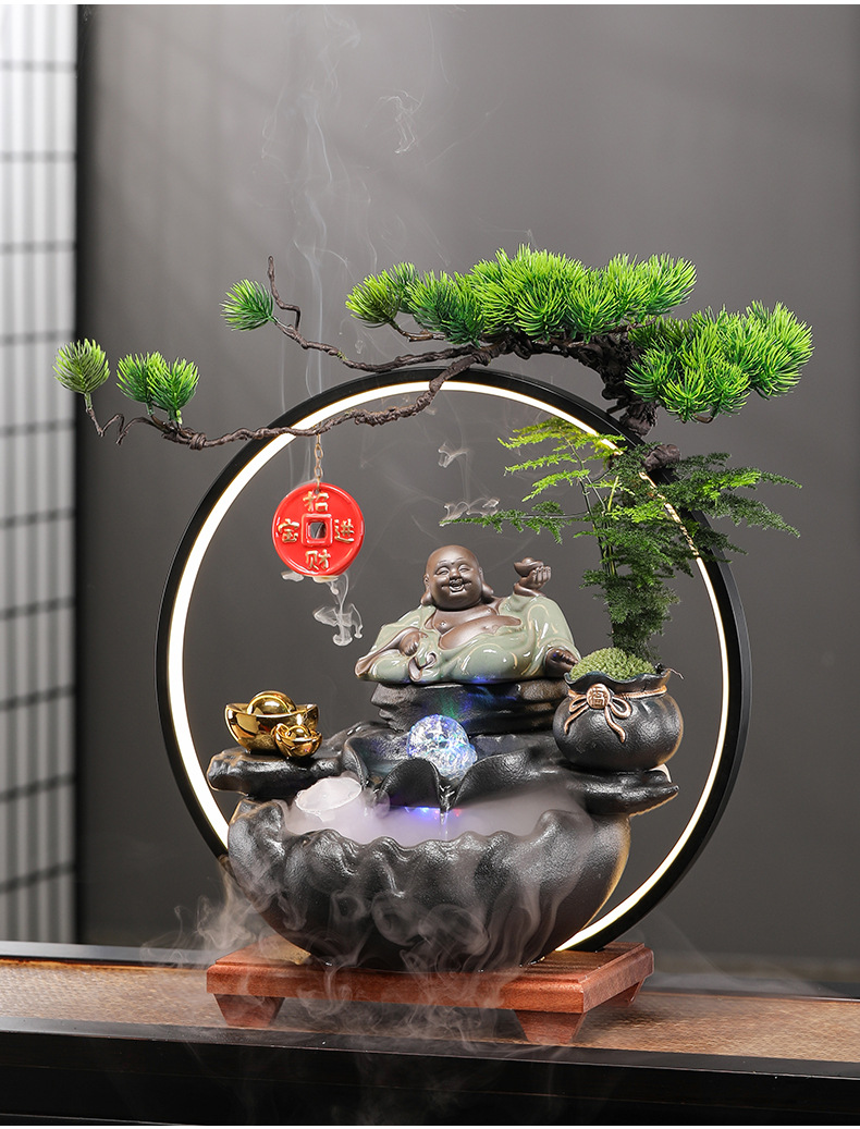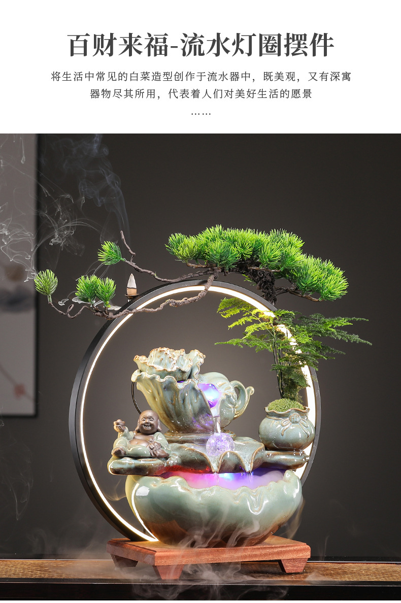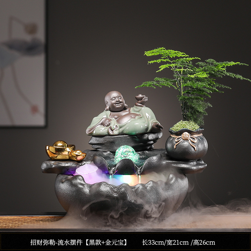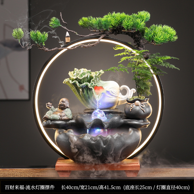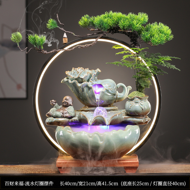 • Baicai Laifu-물 램프 링 장식 [블랙 스타일 + 포춘 Maitreya]