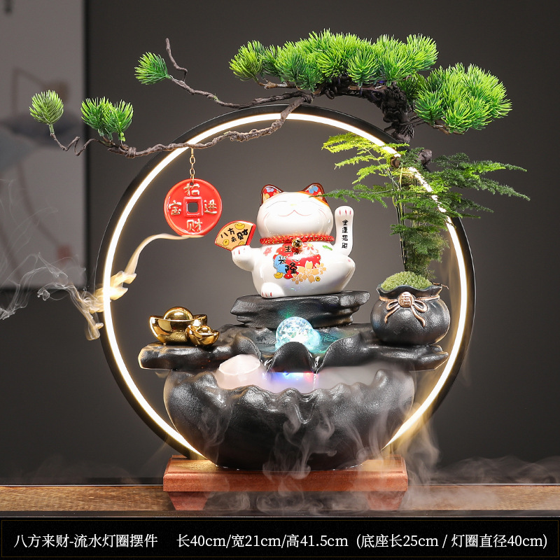 창조적 인 행운의 고양이 흐르는 물 장식 루프 행운의 공 거실 입구 회사 사무실 장식 오프닝 선물