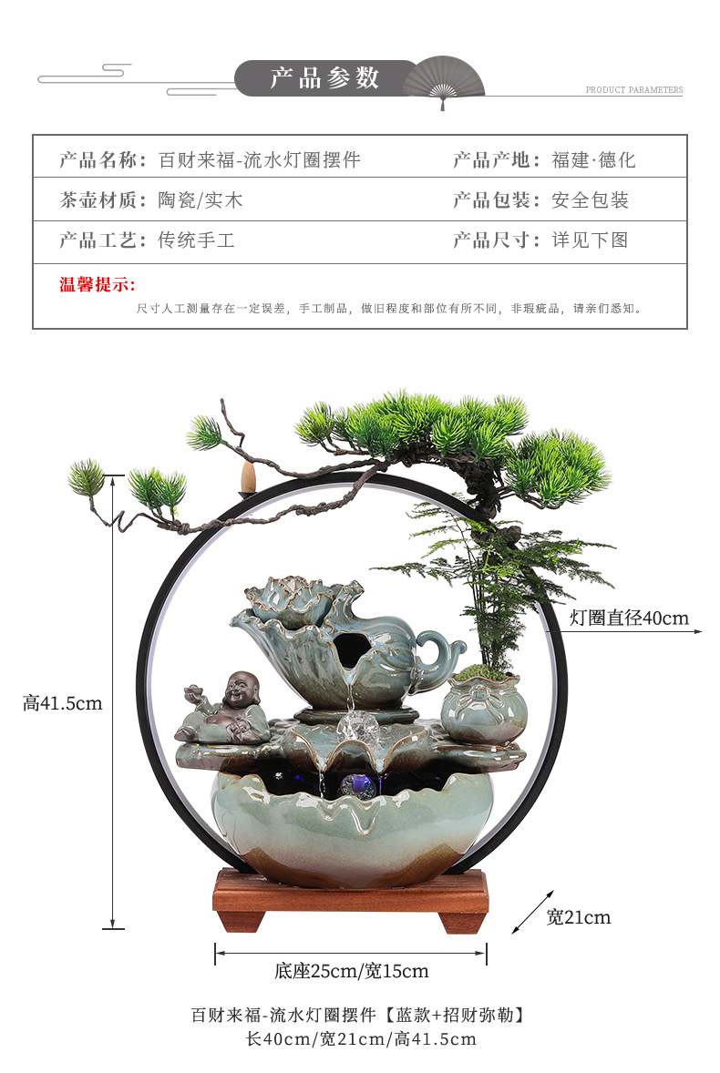 • Baicai Laifu-물 램프 링 장식 [블루 스타일 + 재산 Maitreya]