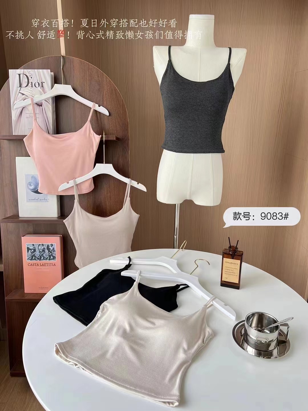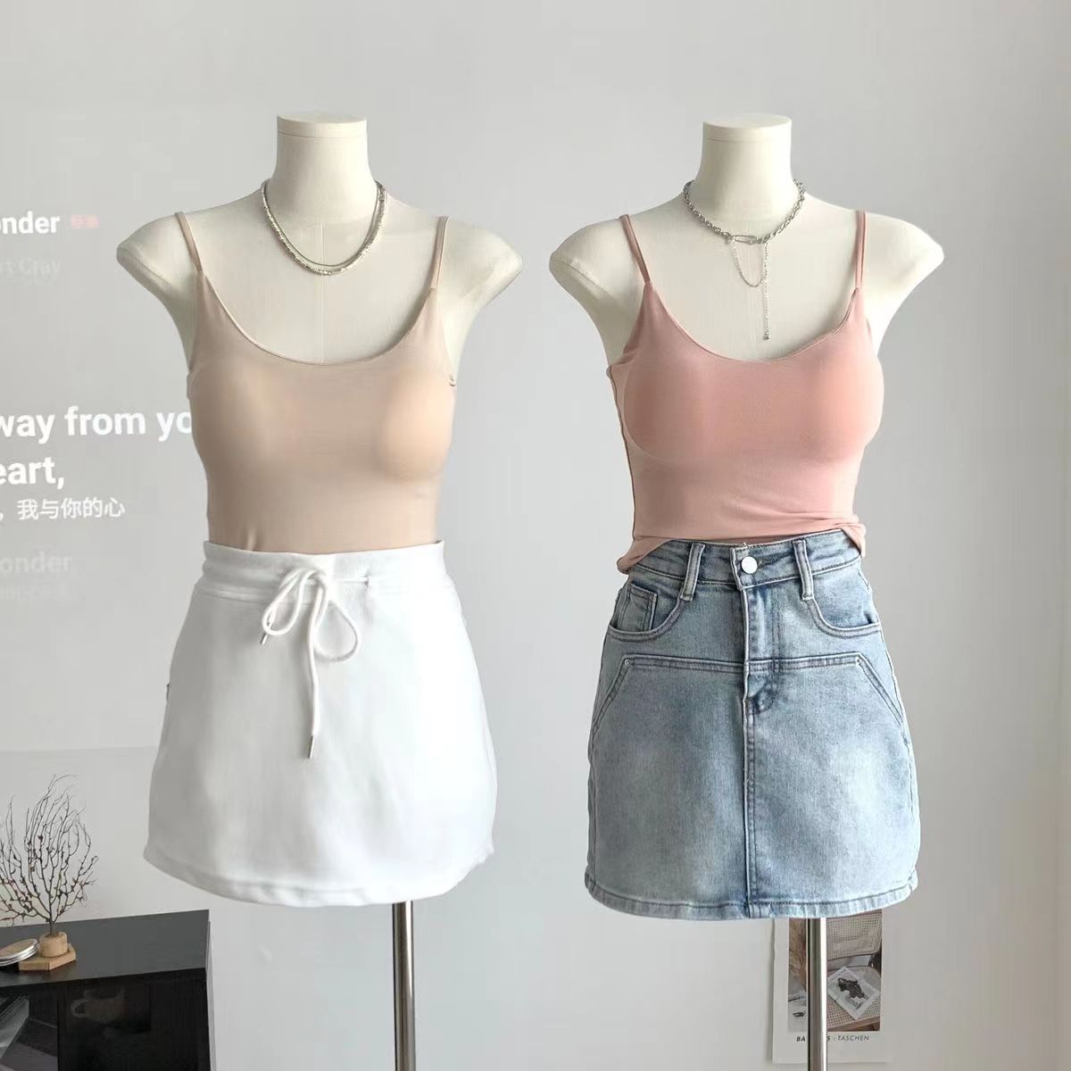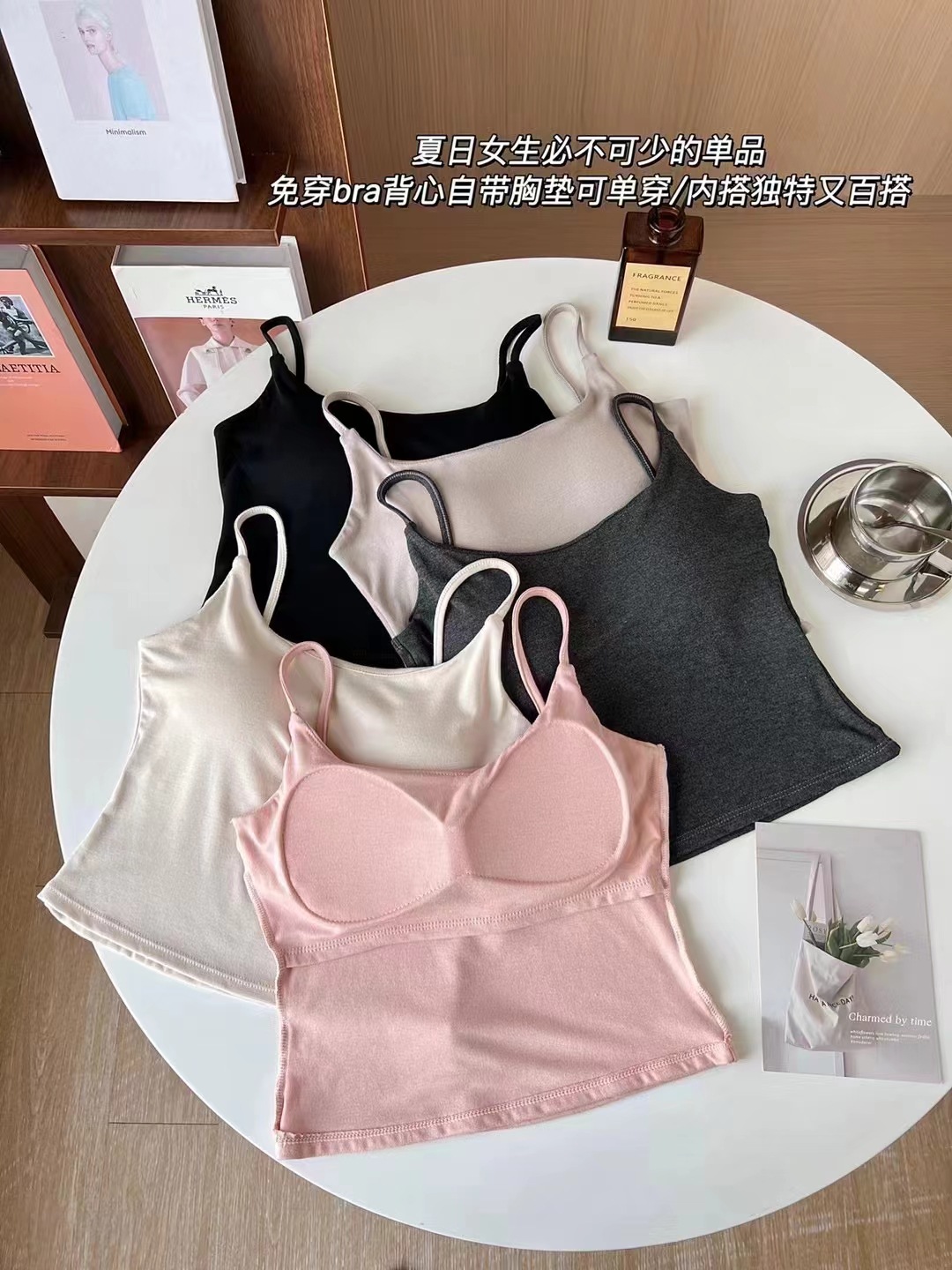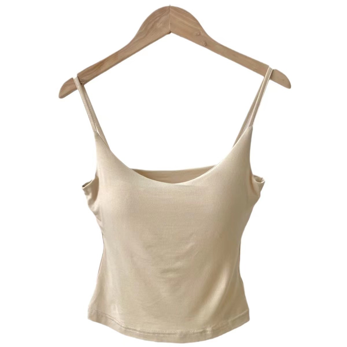 인조섬유 민소매 탑 내장형 브라패드로 컵업 효과, 외부 확장형 디자인으로 가슴을 돋보이게 하는 여름용 슬림핏 여성용 이너웨어스토어 가기