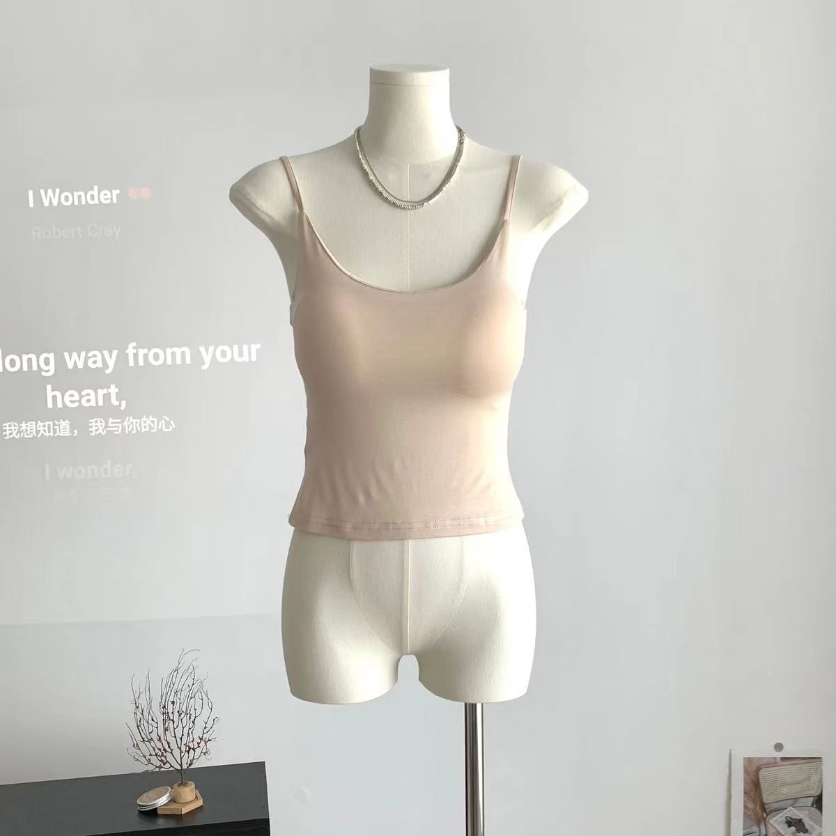 인조섬유 민소매 탑 내장형 브라패드로 컵업 효과, 외부 확장형 디자인으로 가슴을 돋보이게 하는 여름용 슬림핏 여성용 이너웨어