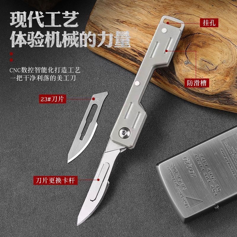 하이 엔드 휴대용 접이식 아트 과일 나이프 날카로운 스테인레스 스틸 메스 키 체인 나이프 교체 가능한 블레이드
