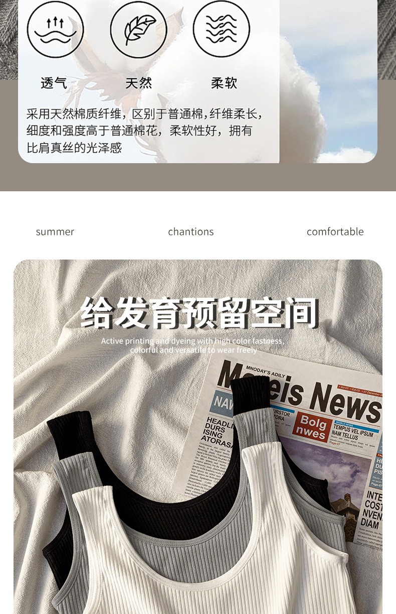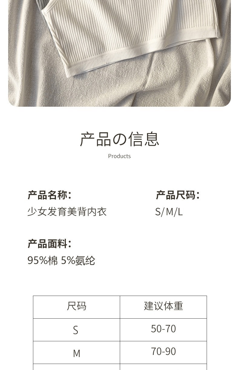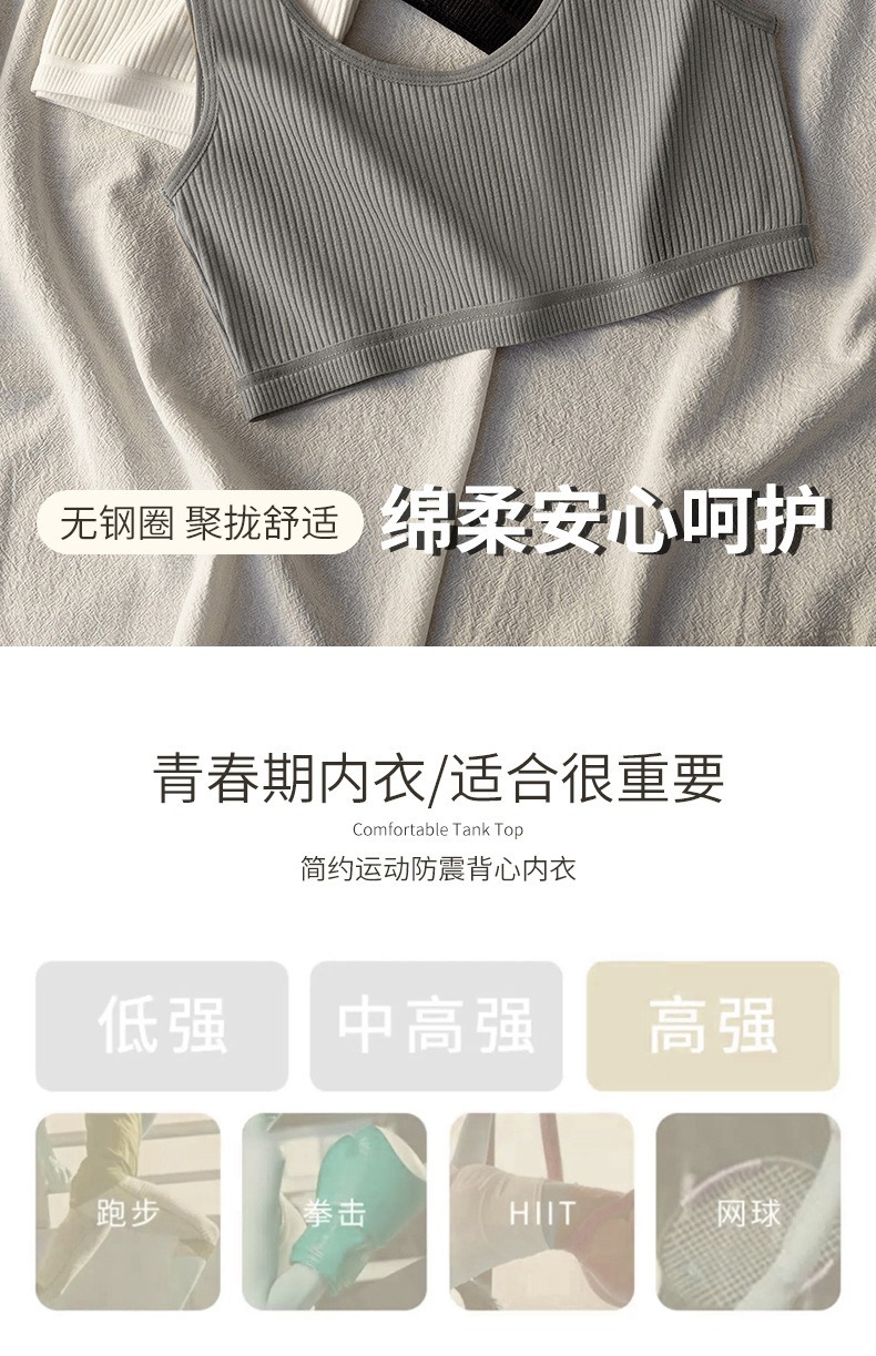 소녀의 브래지어, 안티 범프 튜브 탑, 순수한면 피부 친화적 인 조끼, 소녀 속옷스토어 가기