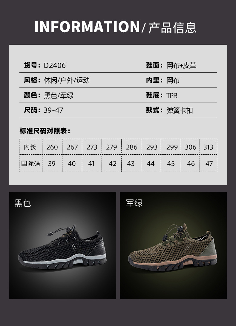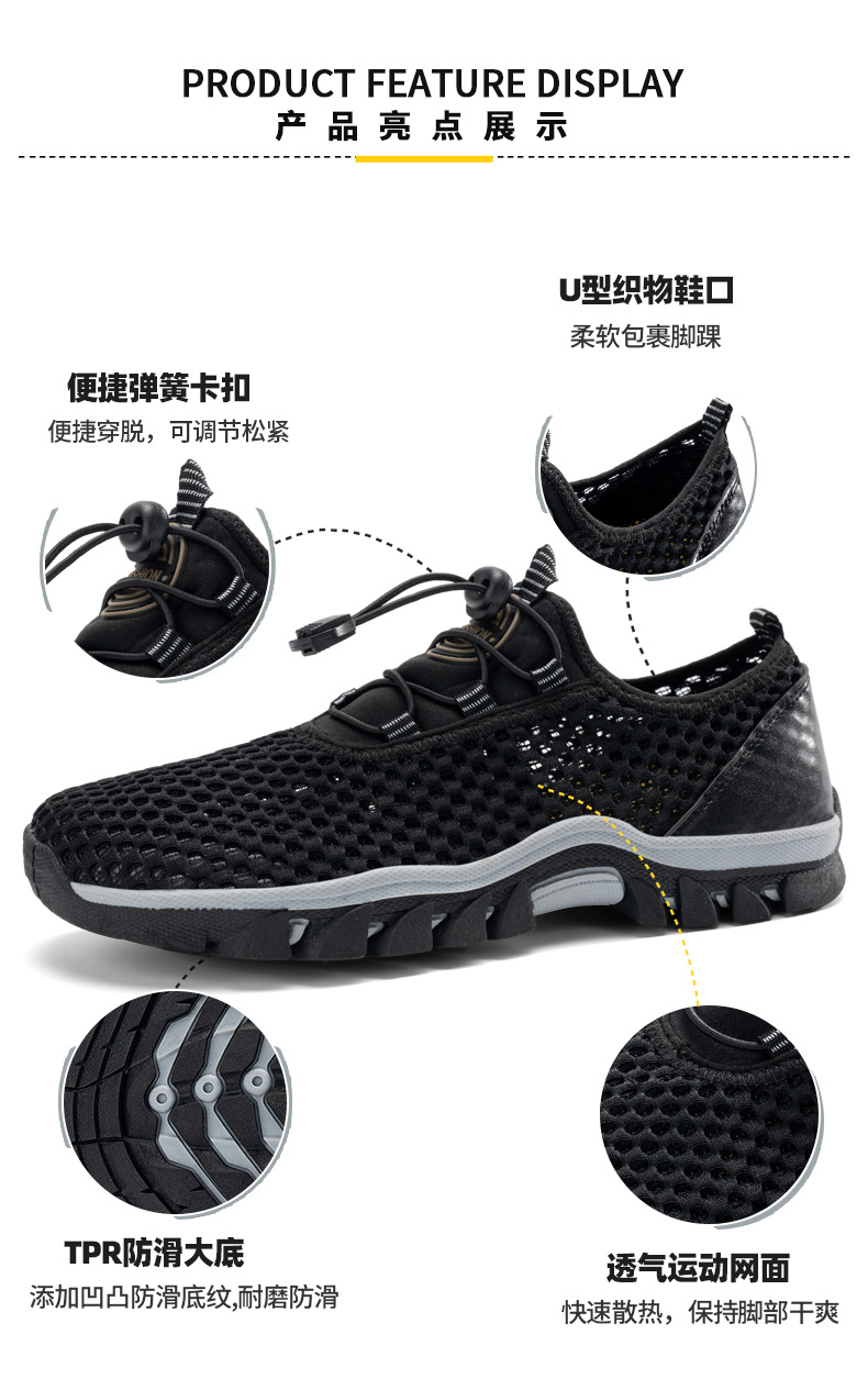 크로스보더 2024 여름 남성용 메쉬 신발, 워터 슈즈, 등산화, 해변화, 미끄럼 방지 아웃도어 신발 제조업체스토어 가기