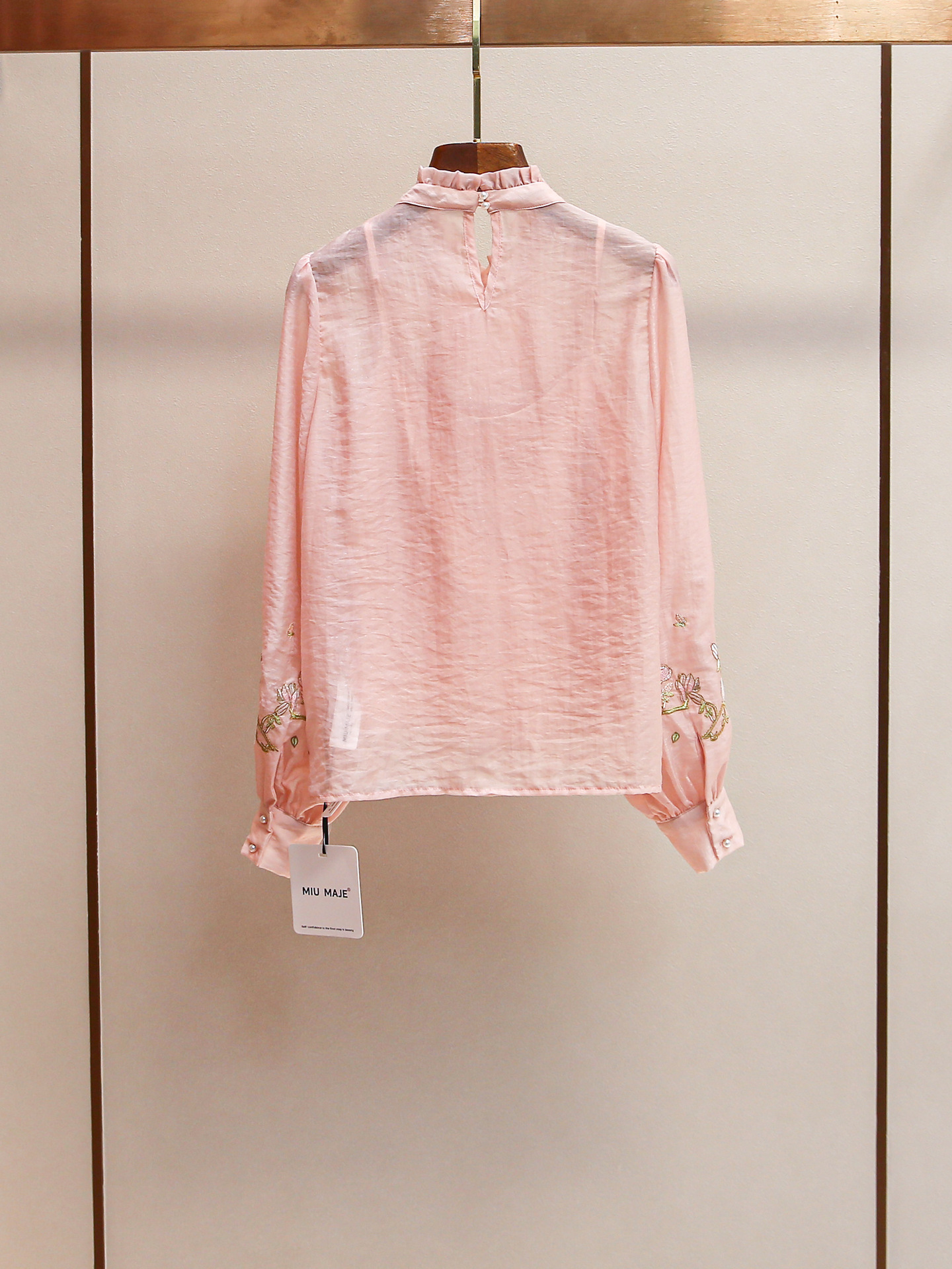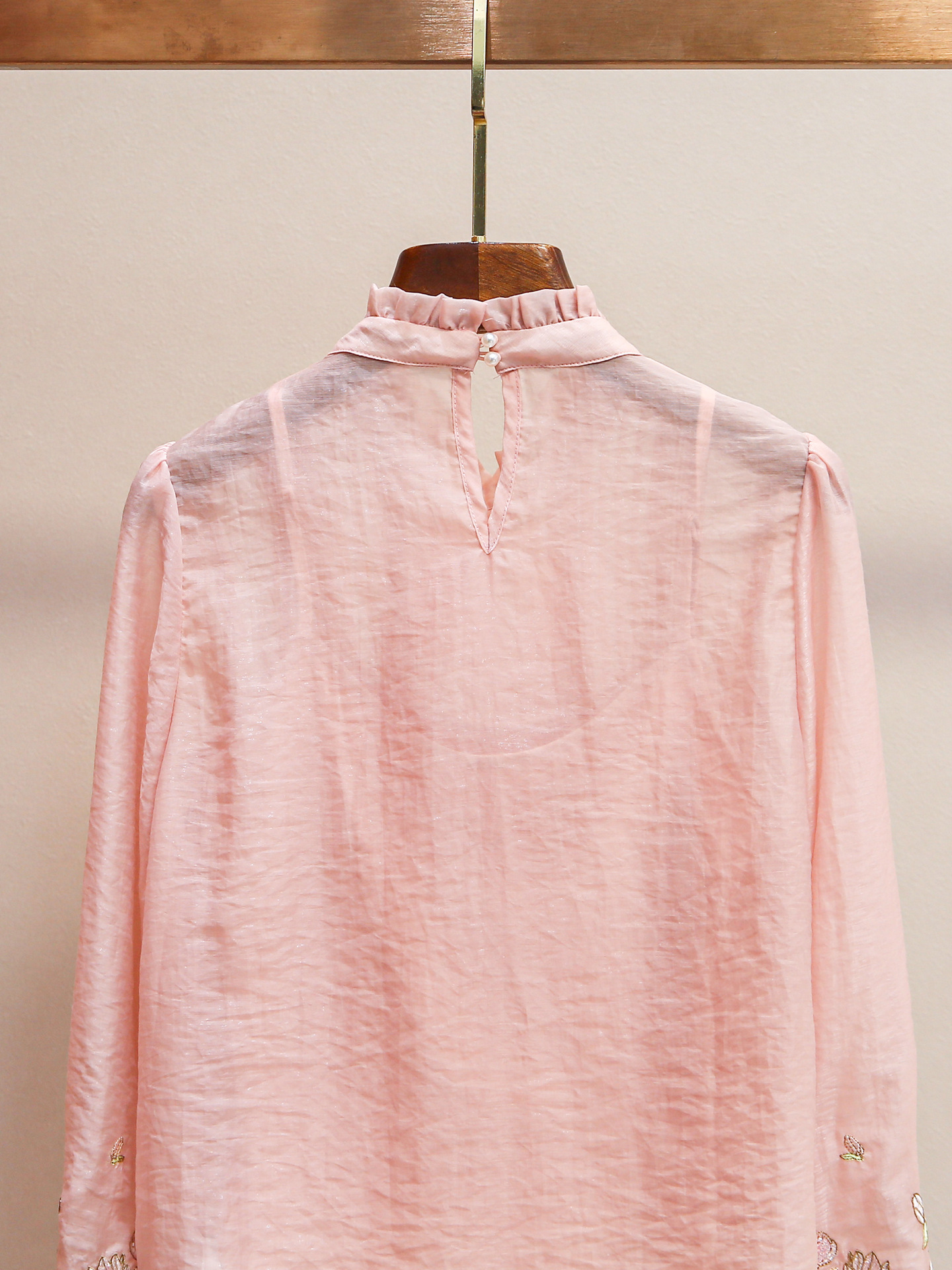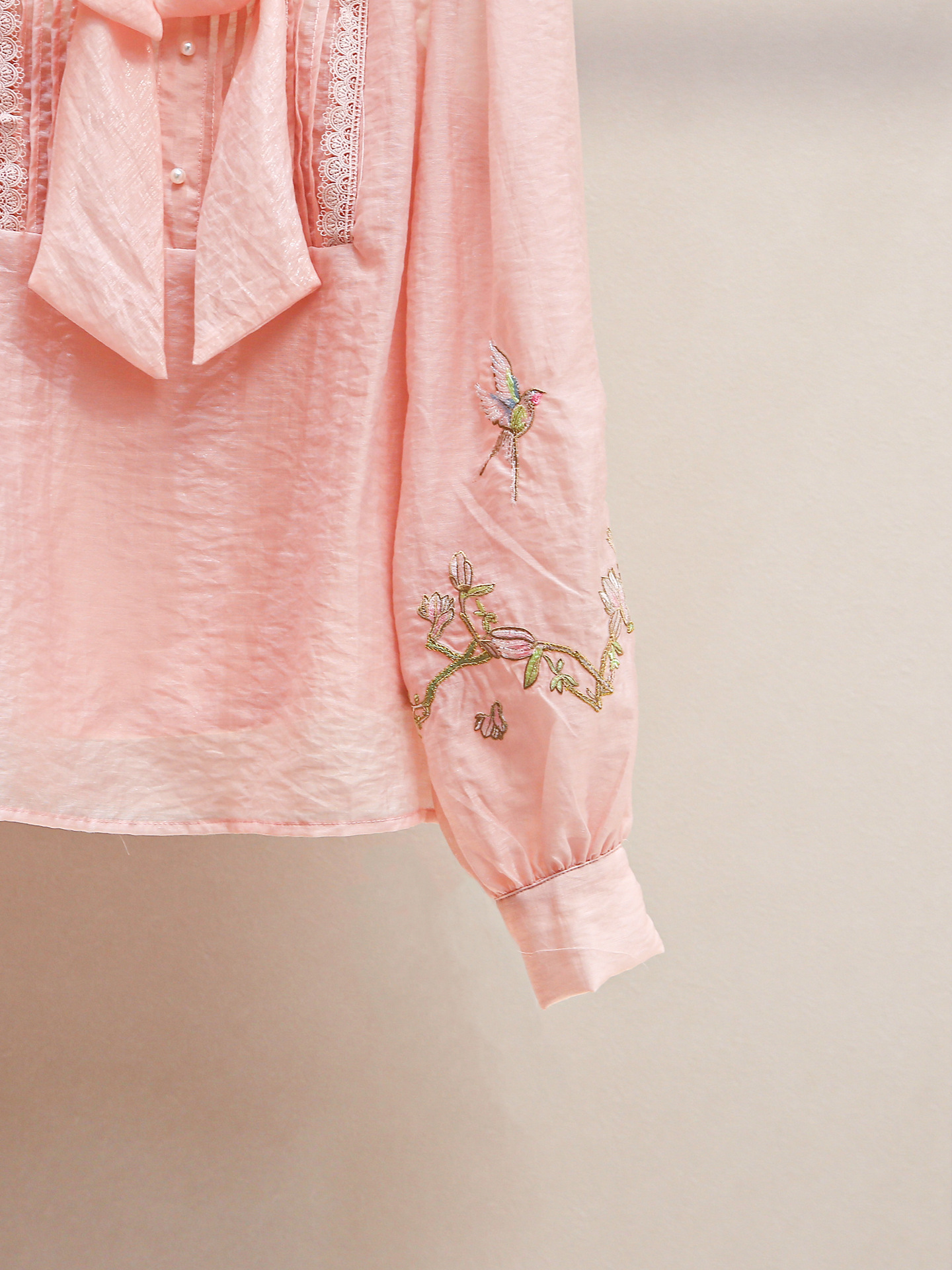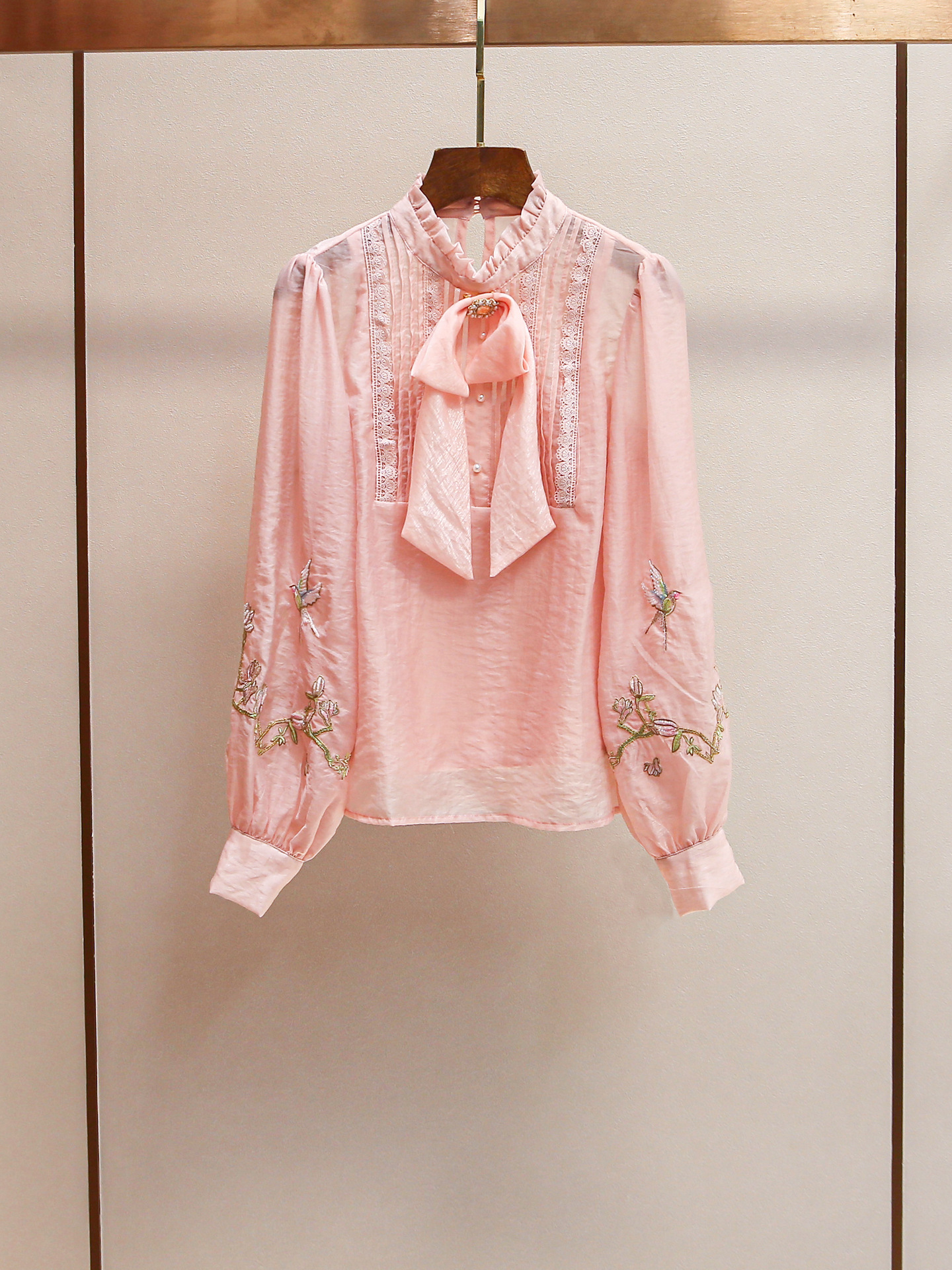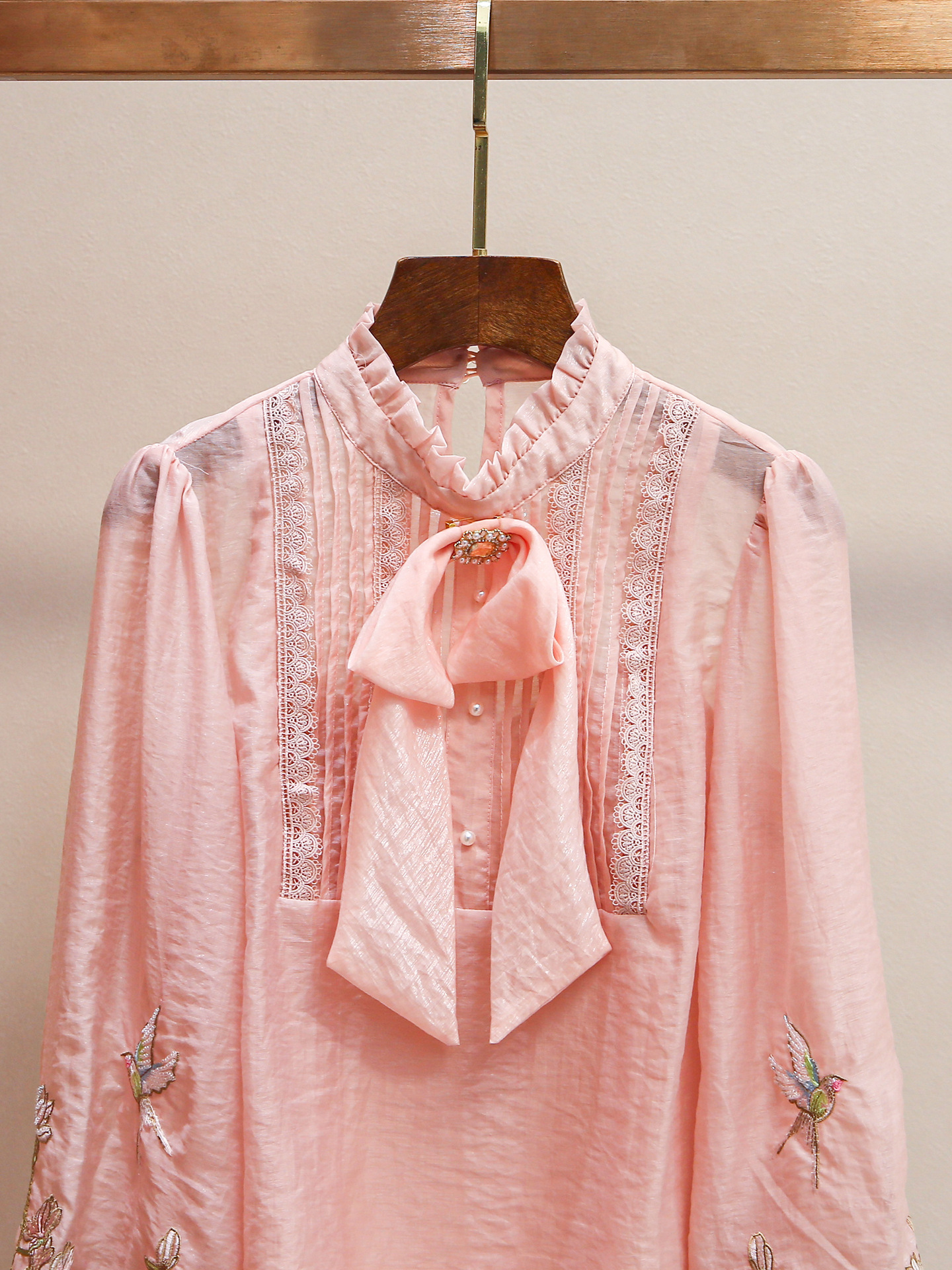 Yili Zuo Ya 24 새로운 여름 스타일 달콤한 미국 스타일 스탠드 업 칼라 다이아몬드 버튼 보우 절묘한 자수 레이스 쉬폰 셔츠 여성용스토어 가기