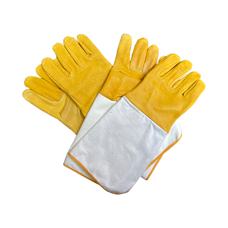 첫 번째 레이어 양모 용접 장갑 내마모성 부드러운 단열 방지 칼 용접기 장갑 긴 양피 노동 보호 장갑