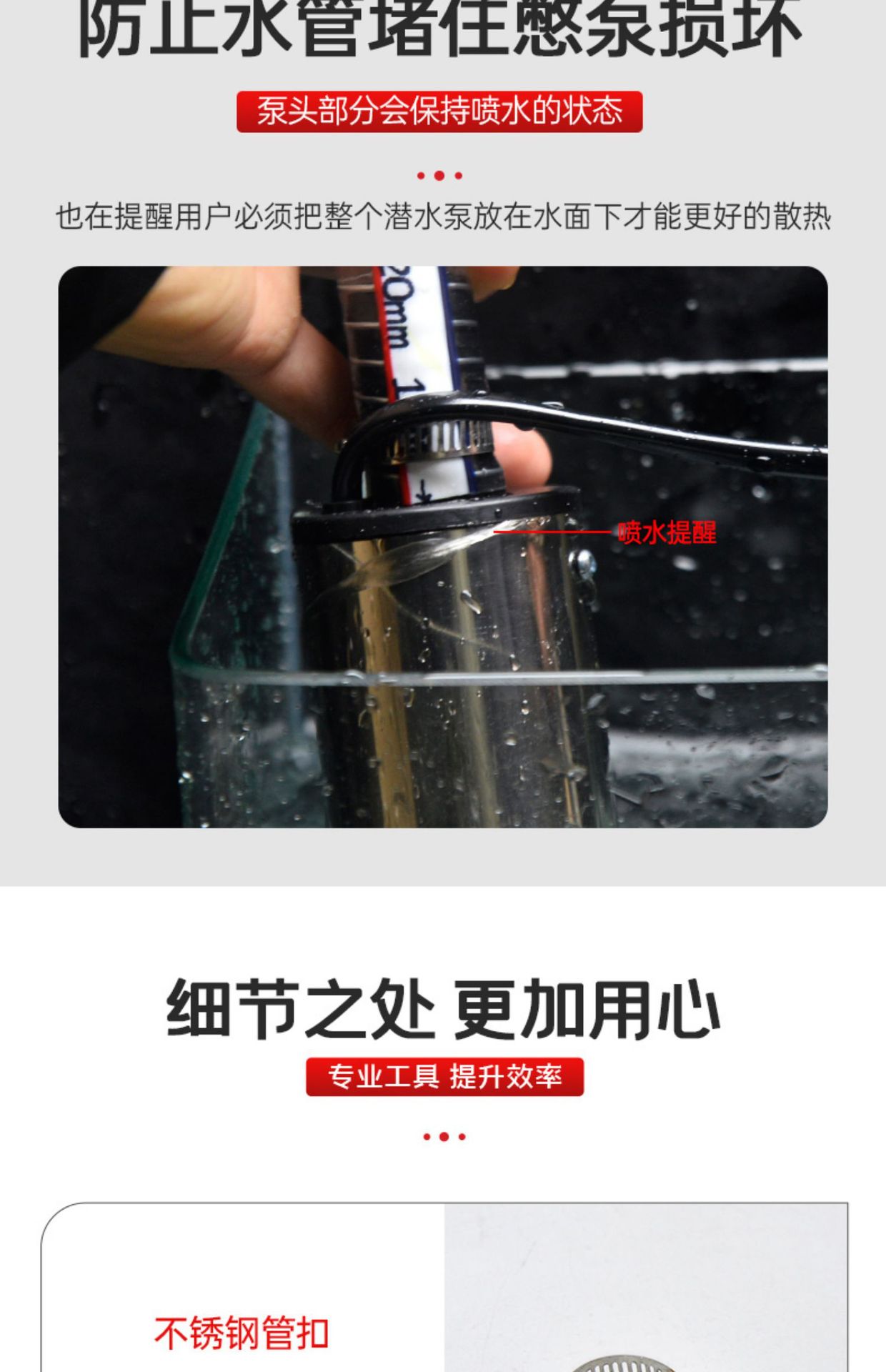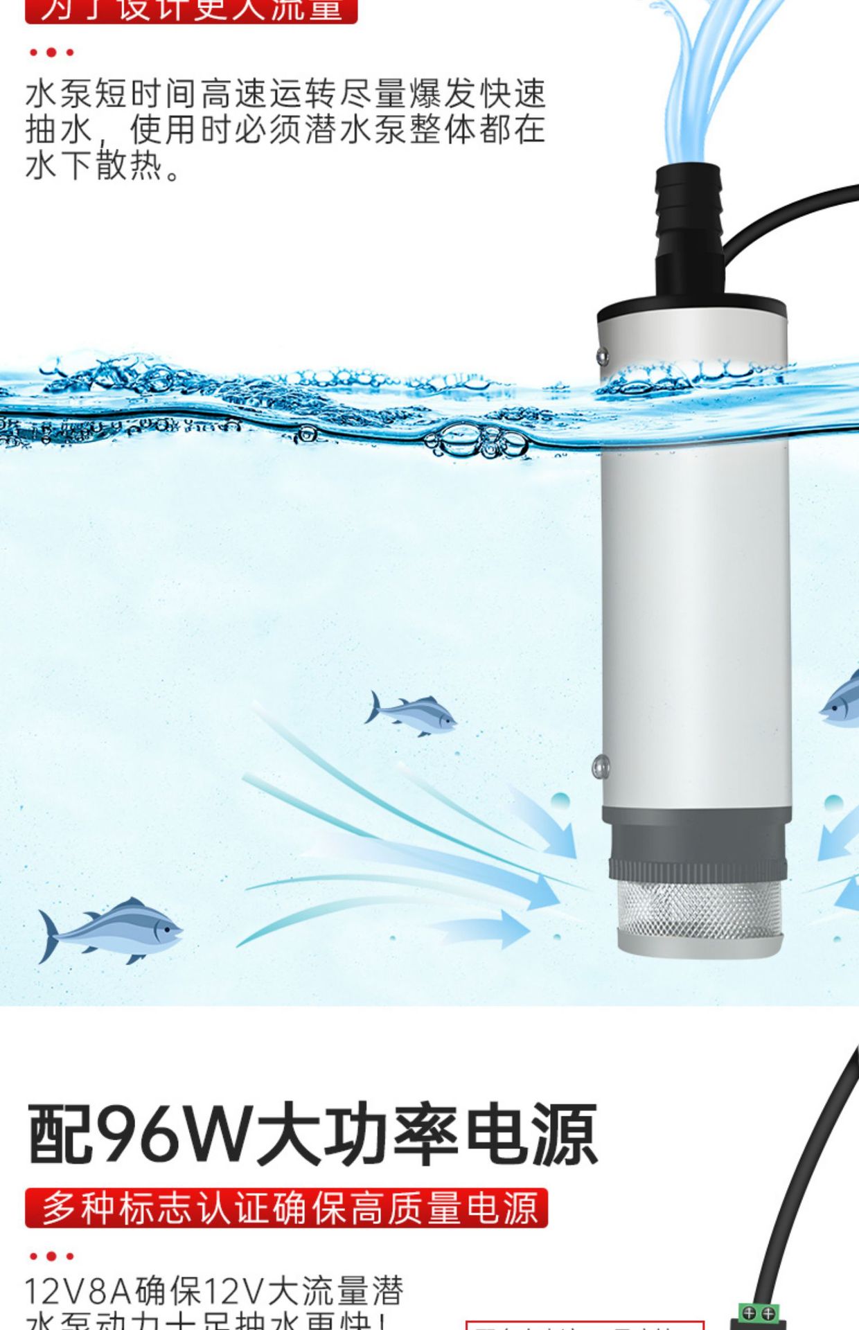 • 12v8a 전원 공급 장치 + 대형 파이프 버클이 있는 51mm 수중 펌프