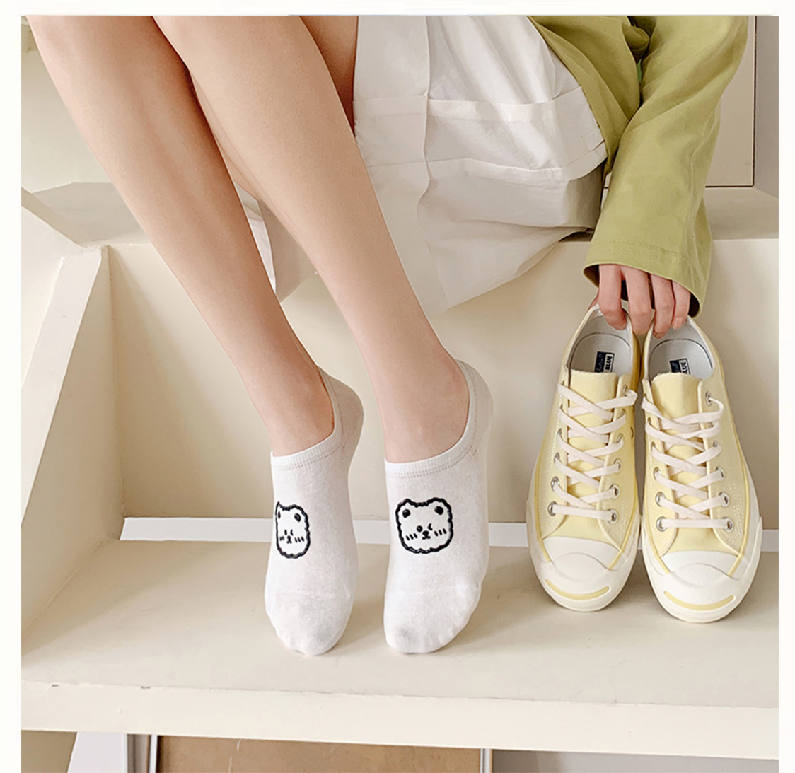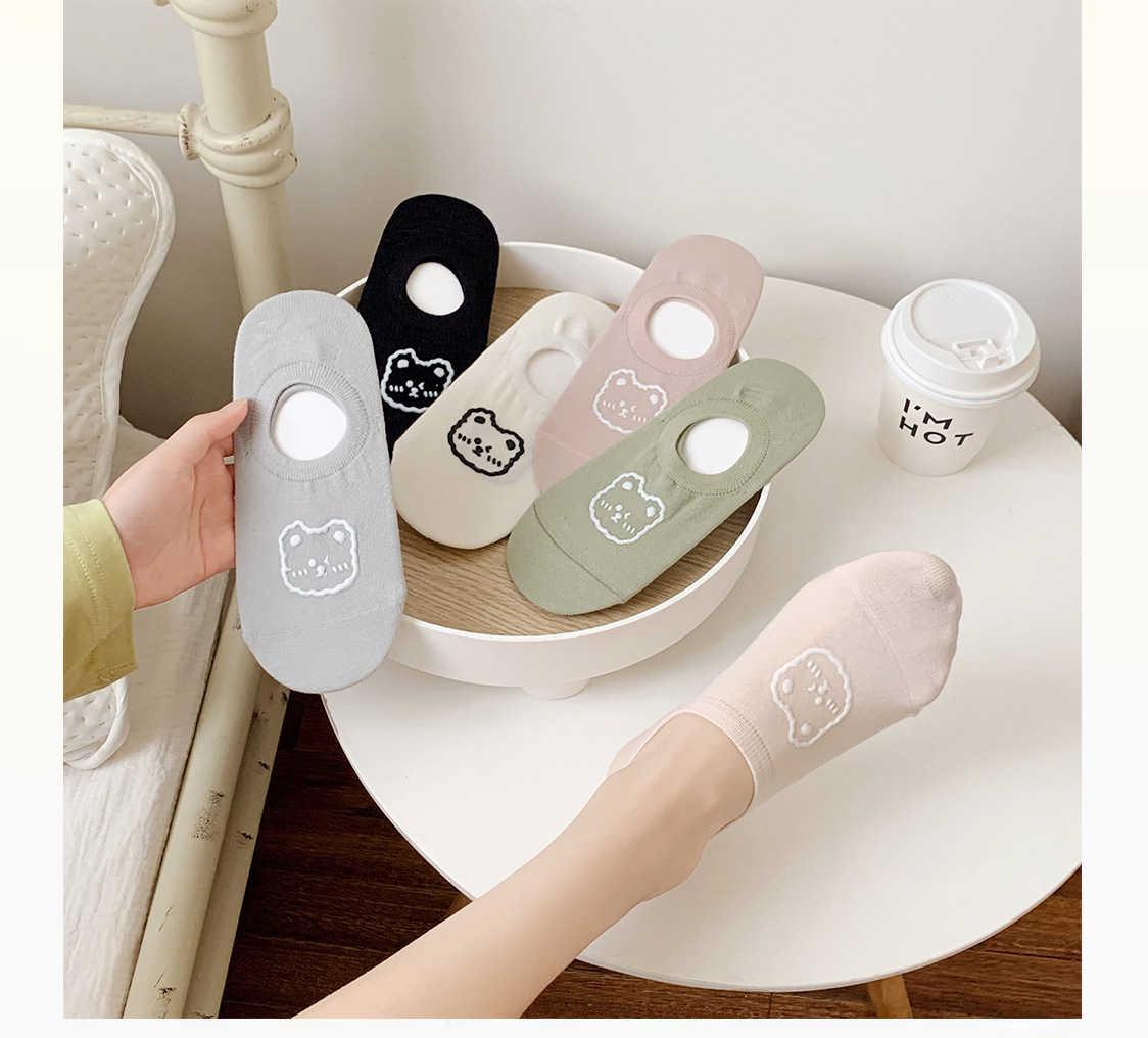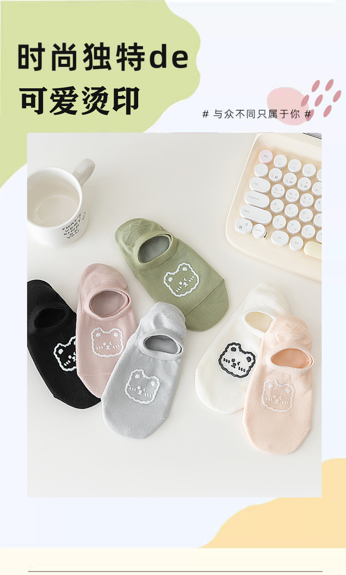 만화 곰 보트 양말 여성의 3 차원 인쇄 얇은 미끄럼 방지 실리콘 미끄럼 방지 보이지 않는 양말 간단한 로우 컷 양말스토어 가기