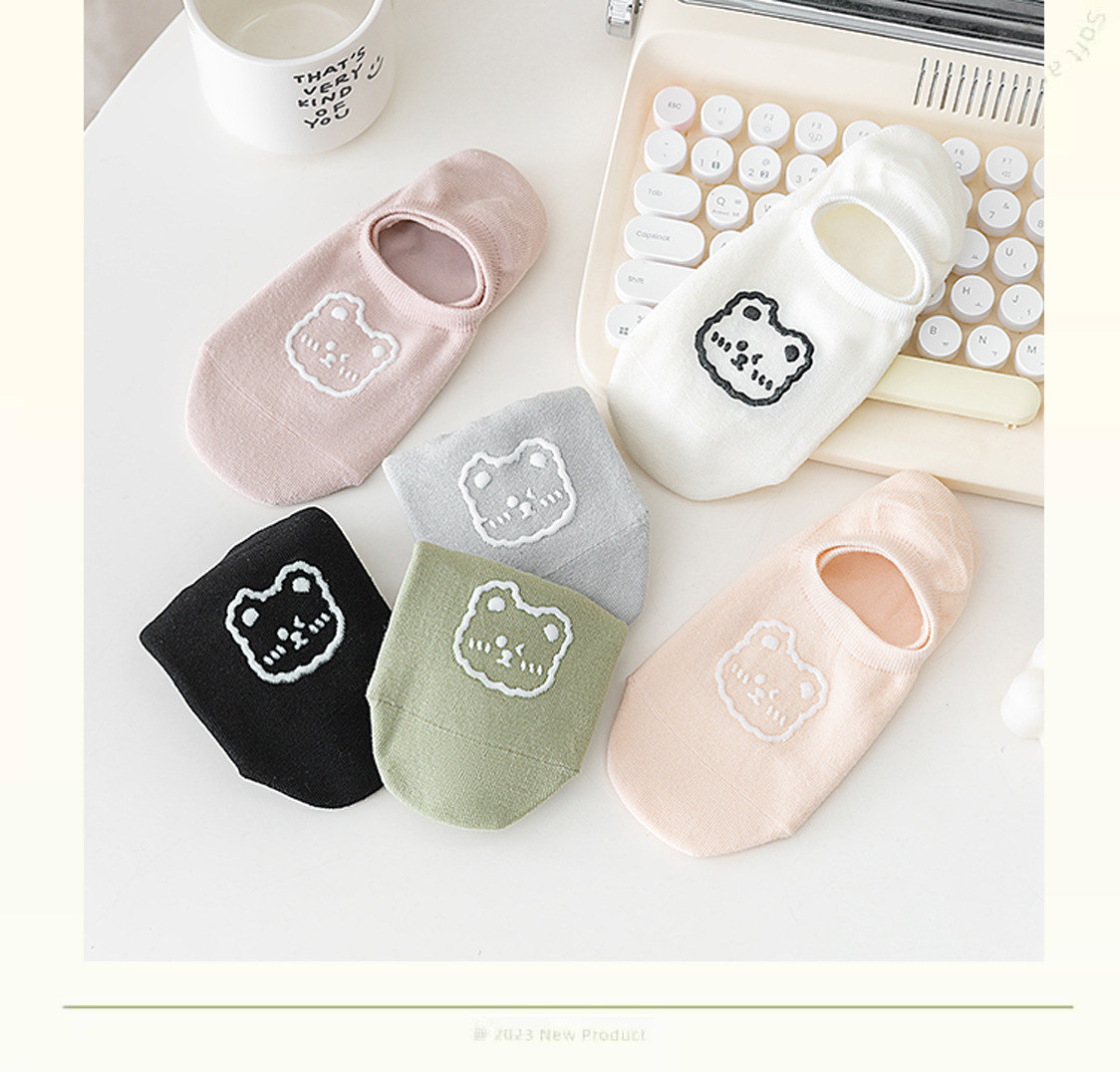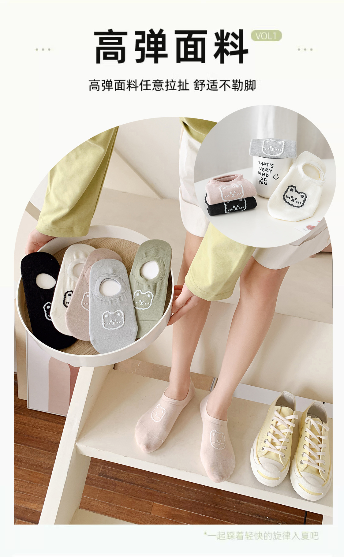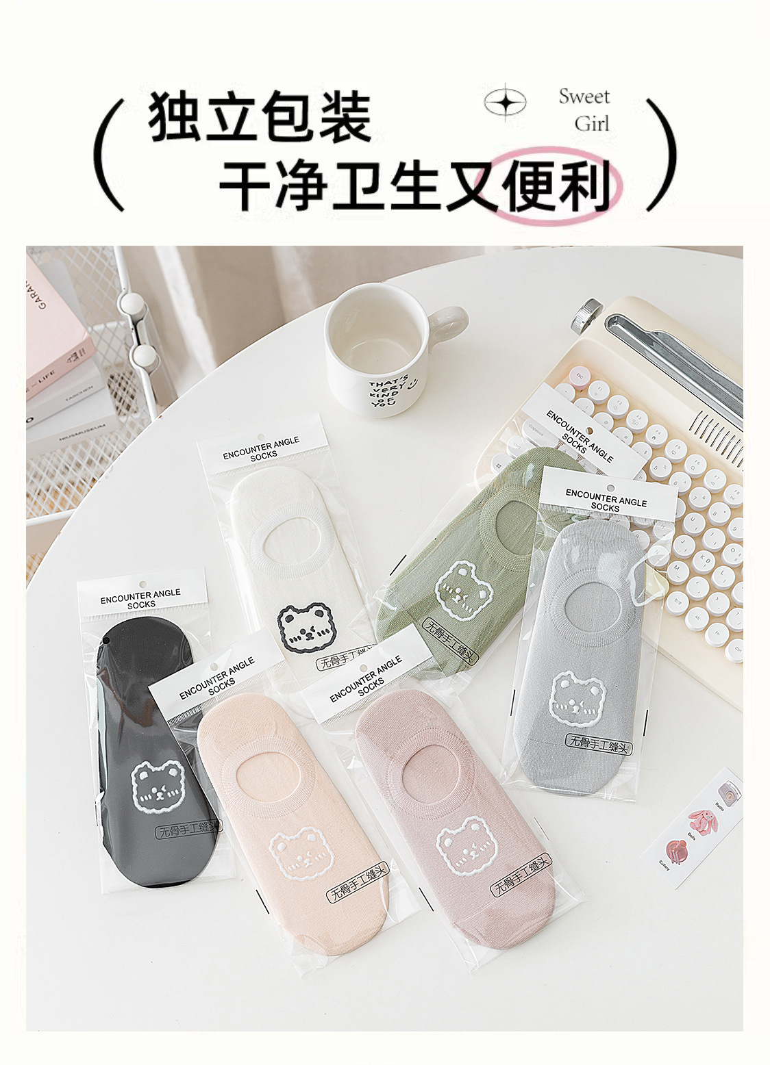 만화 곰 보트 양말 여성의 3 차원 인쇄 얇은 미끄럼 방지 실리콘 미끄럼 방지 보이지 않는 양말 간단한 로우 컷 양말스토어 가기