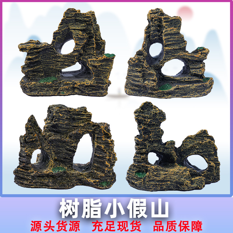 • 树脂假山鱼缸造景装饰摆件仿真树脂小假山岩石鱼虾躲避窝