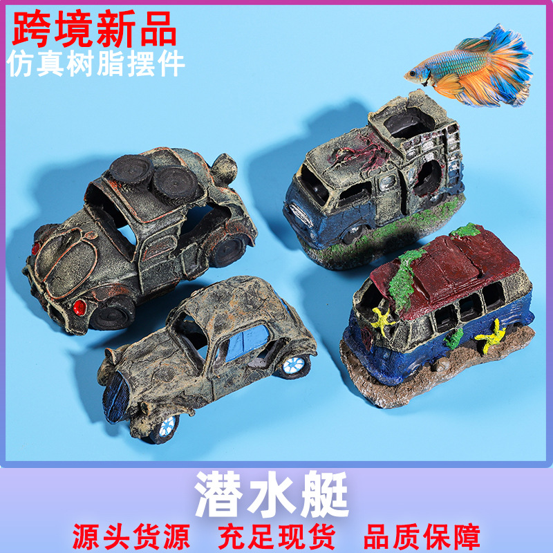 • 创意鱼缸造景装饰摆件汽车残骸 海底世界公交面包房车鱼虾躲避窝