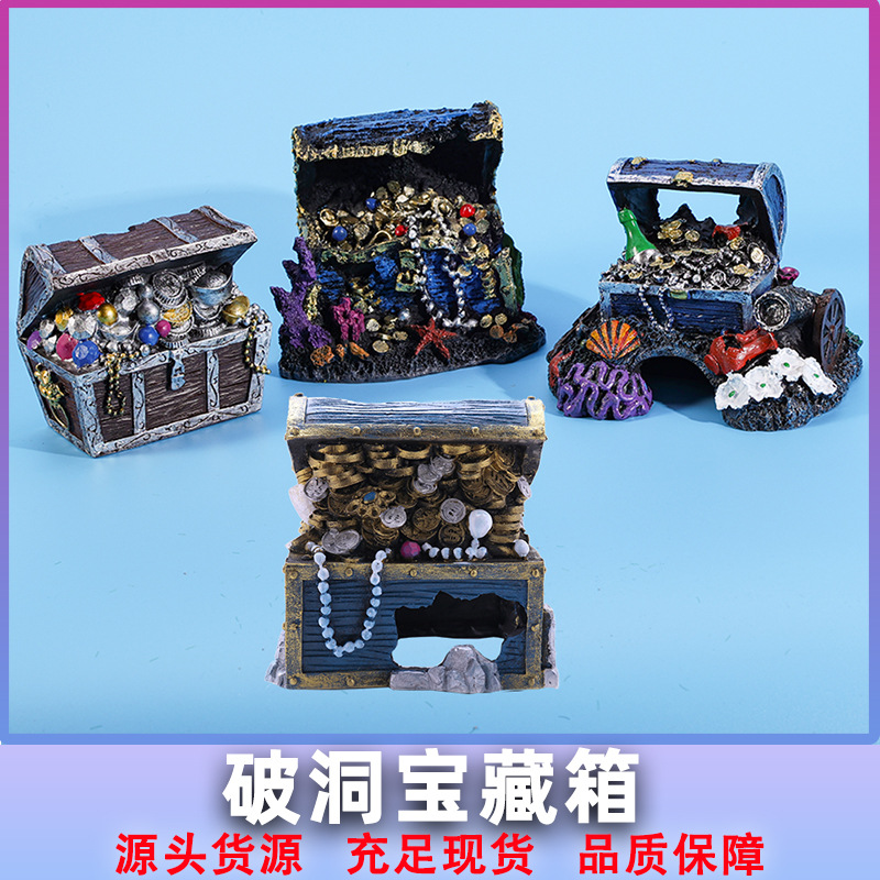 • 海底破洞宝藏箱鱼缸造景装饰摆件仿真树脂宝藏箱鱼虾躲爬宠避窝