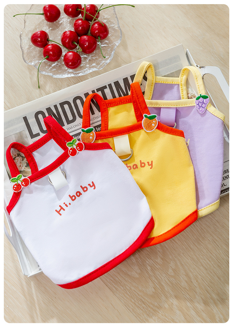 개 옷 봄과 여름 과일 액세서리 견인 슬링 간단한 고양이 조끼 테디 아웃 얇은 애완 동물 옷스토어 가기
