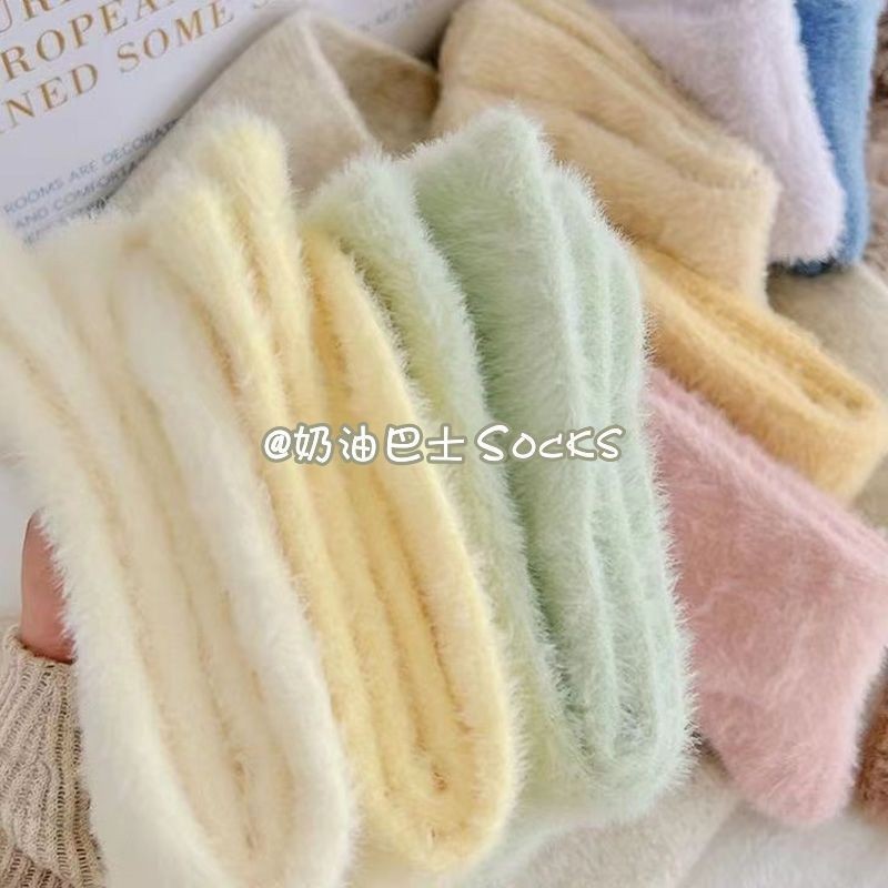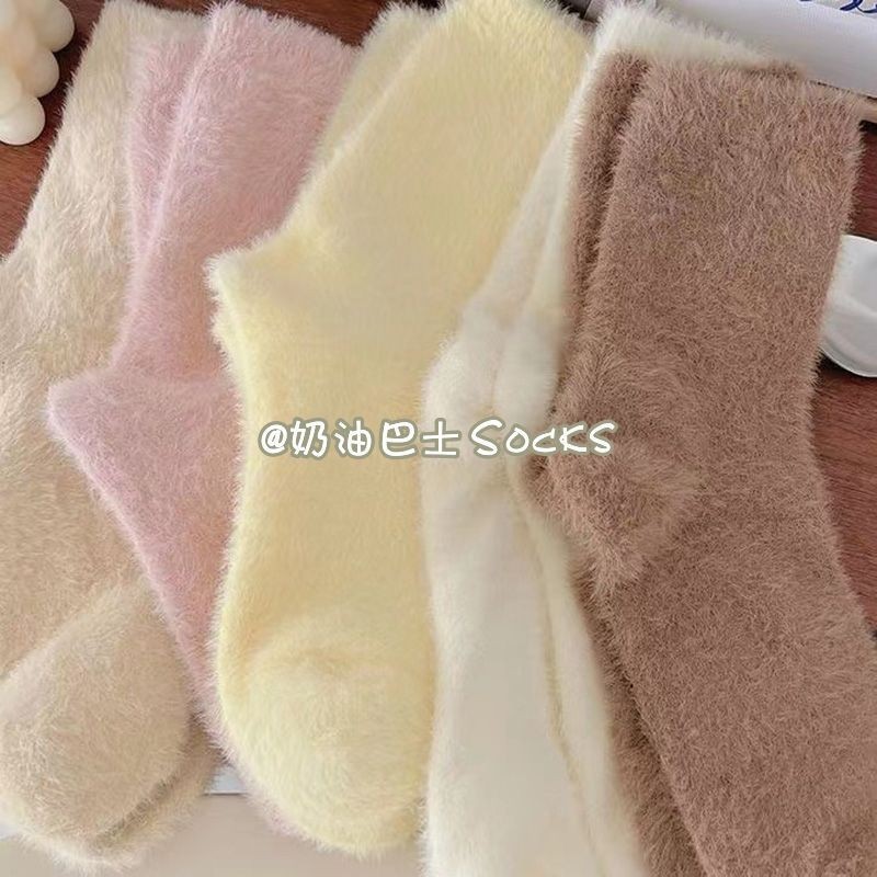 여자 dirong 기모 두꺼운 귀여운 중간 종아리 길이 양말 가을과 겨울 집 따뜻한 밍크 벨벳 스타킹스토어 가기