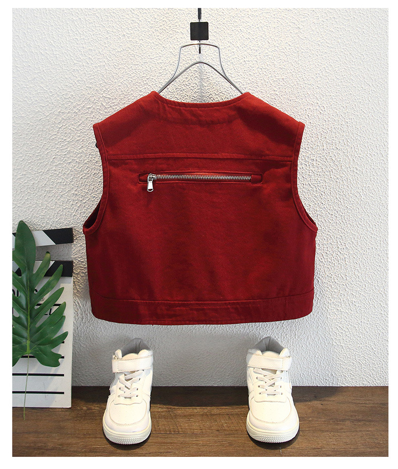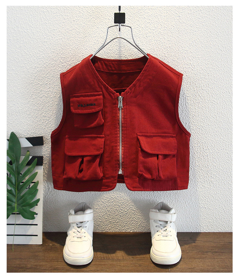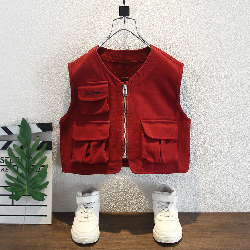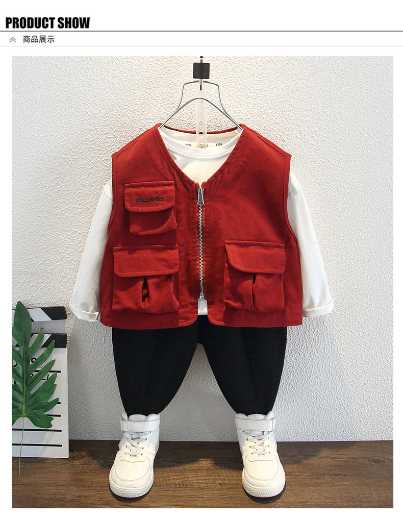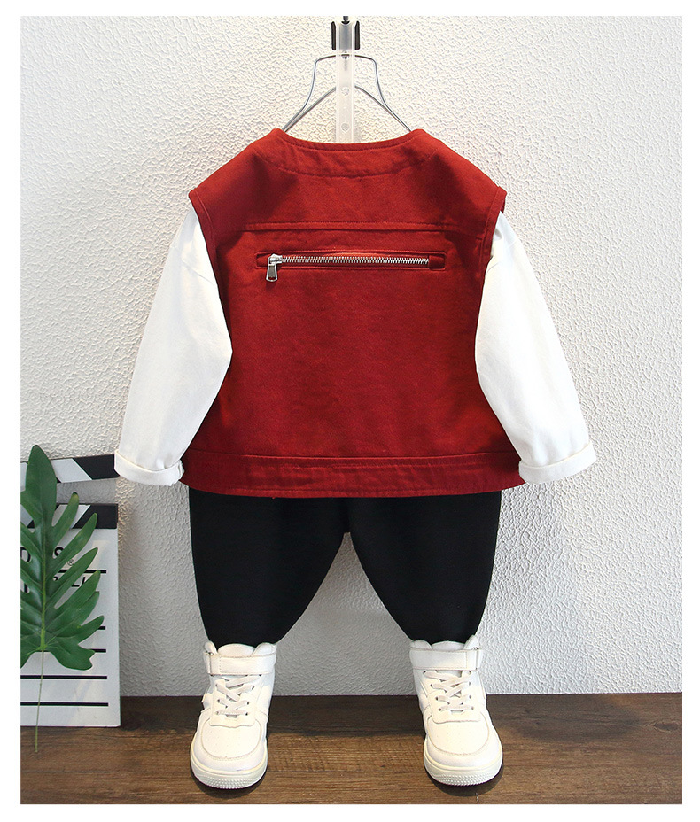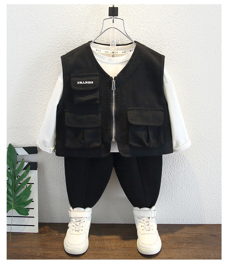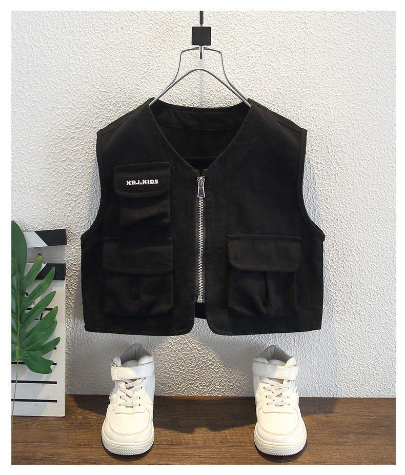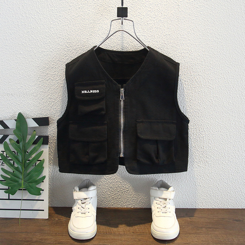 소년의 면화 조끼 봄과 가을 2024 새로운 아기 외부 조끼 어린이 봄 유행 검은 양복 조끼스토어 가기